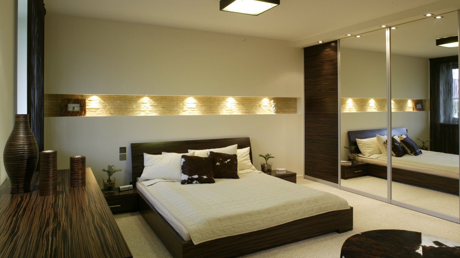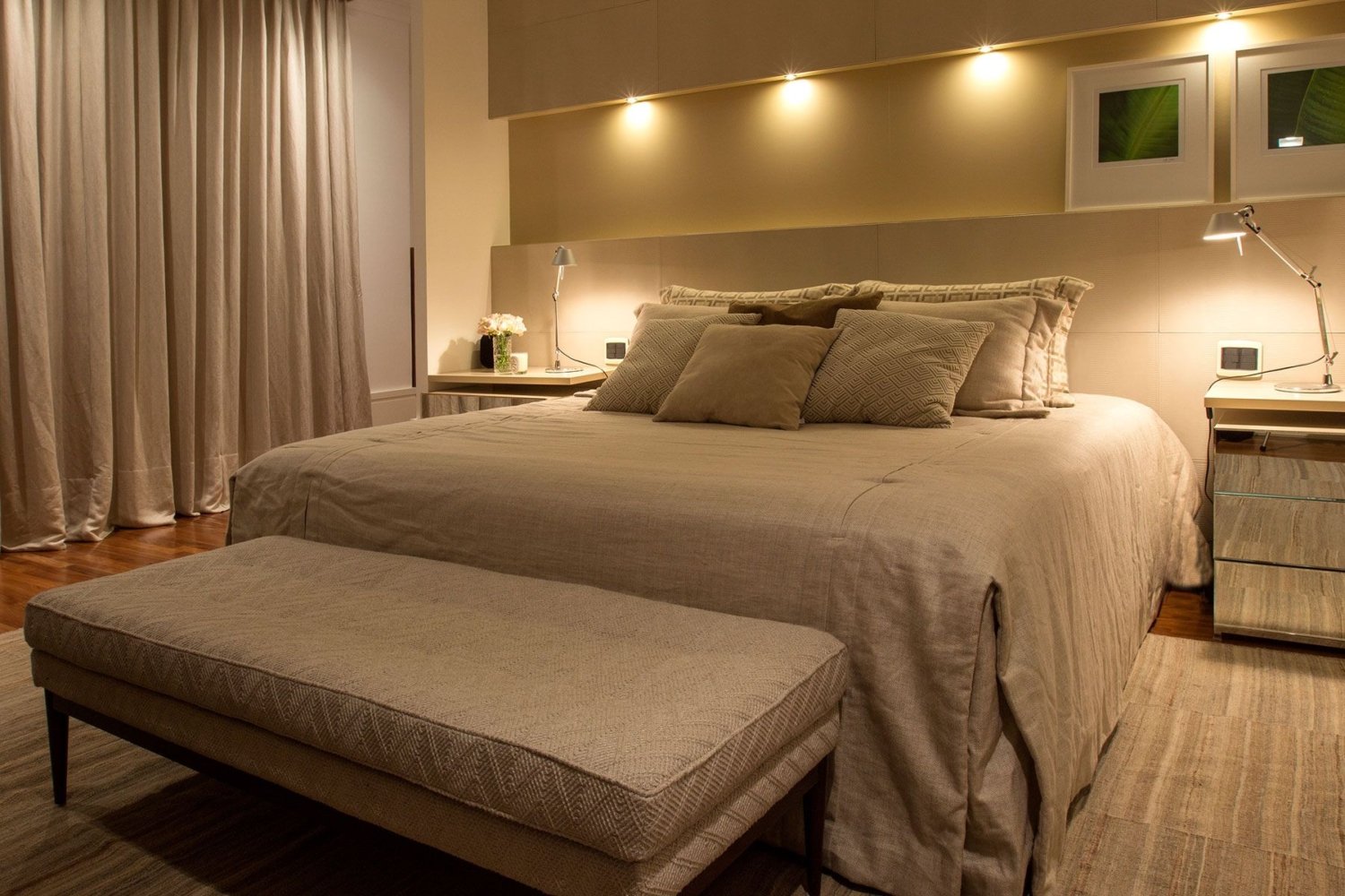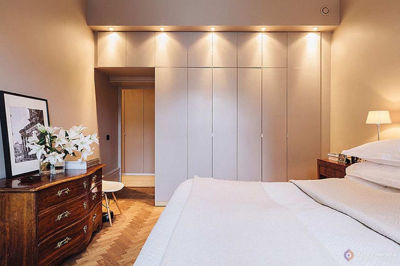 Встроенные светильники в спальне