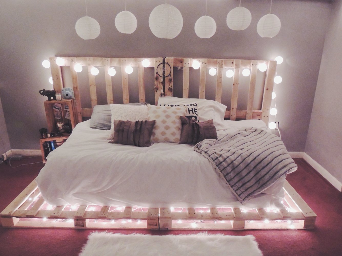 Кровать из поддонов с подсветкой
