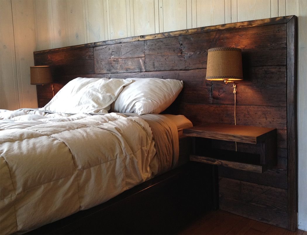 Деревянная кровать с полками в изголовье