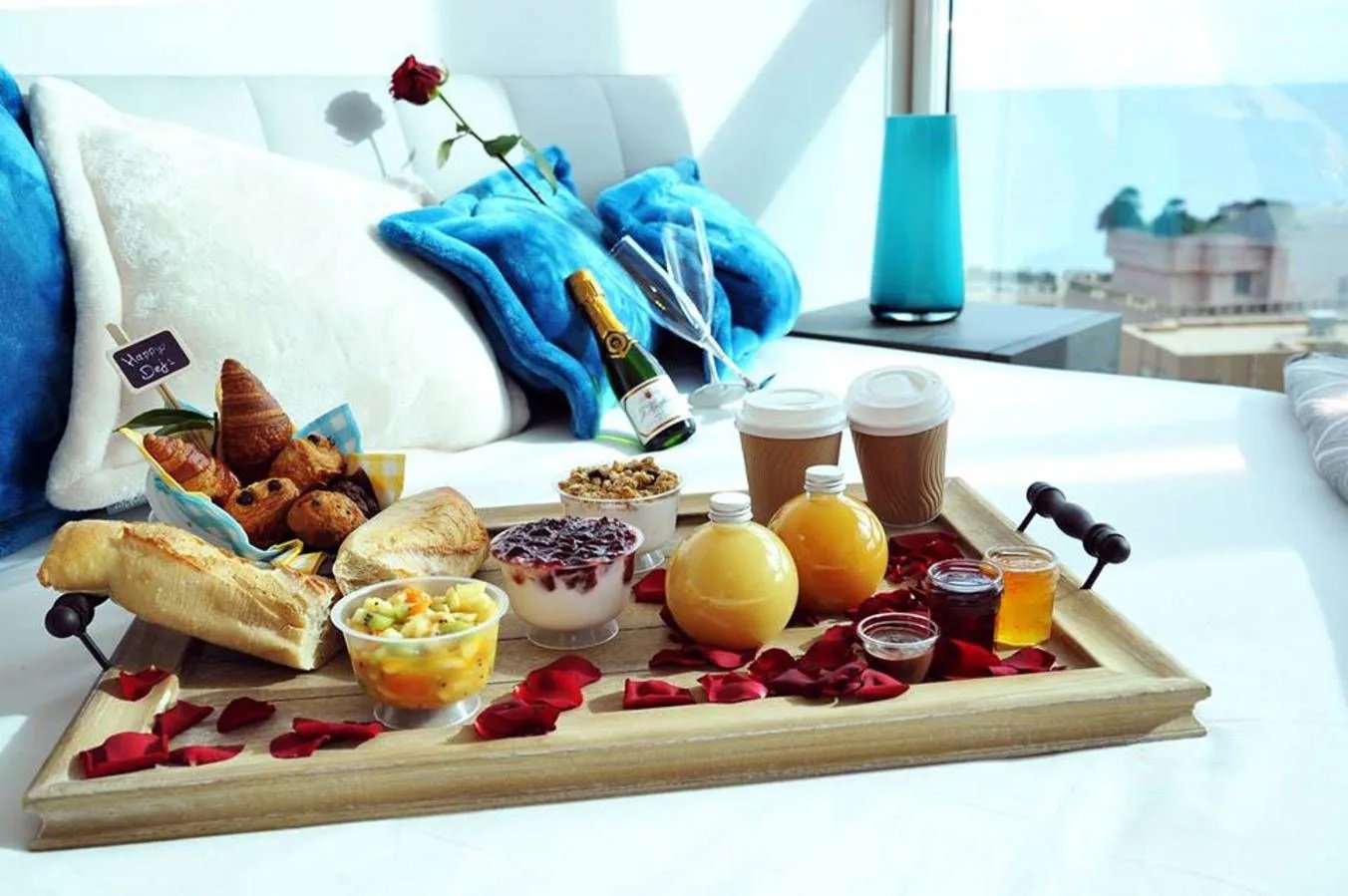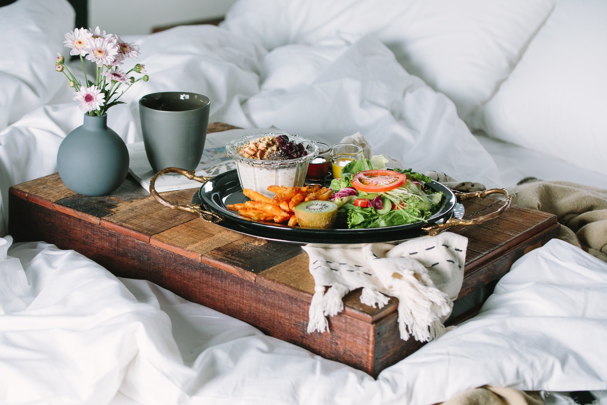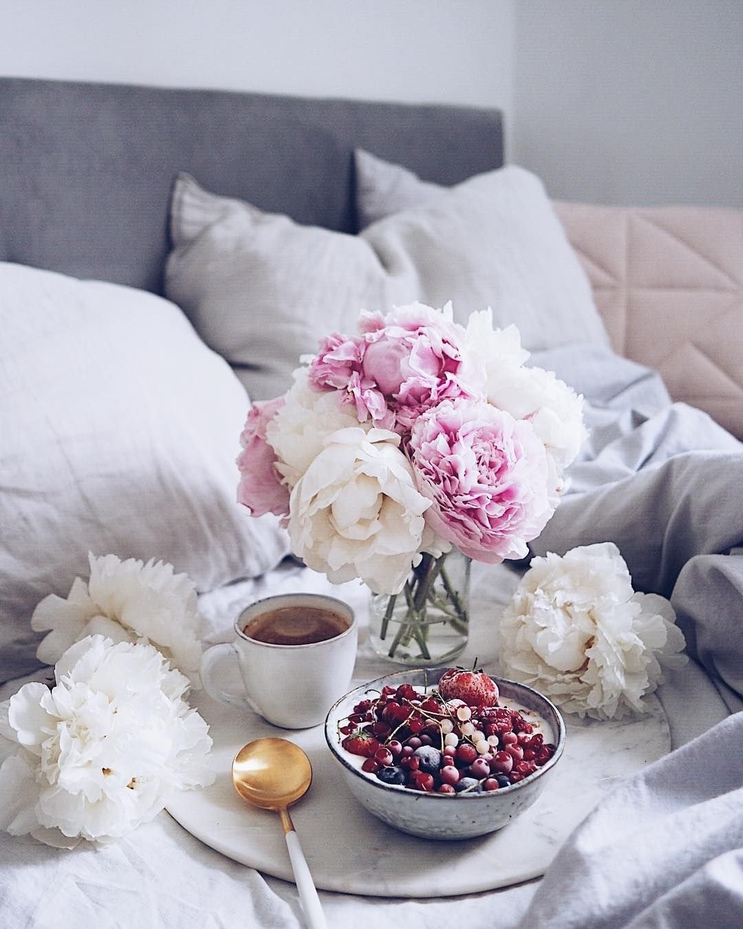 Цветы и завтрак в постель