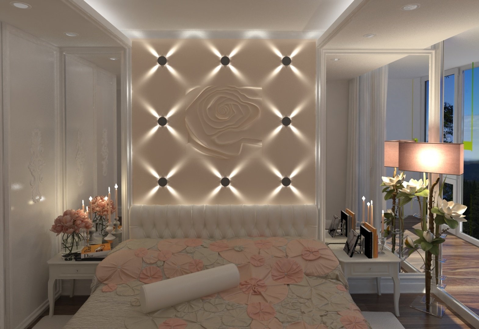 Зеркальное панно в спальне