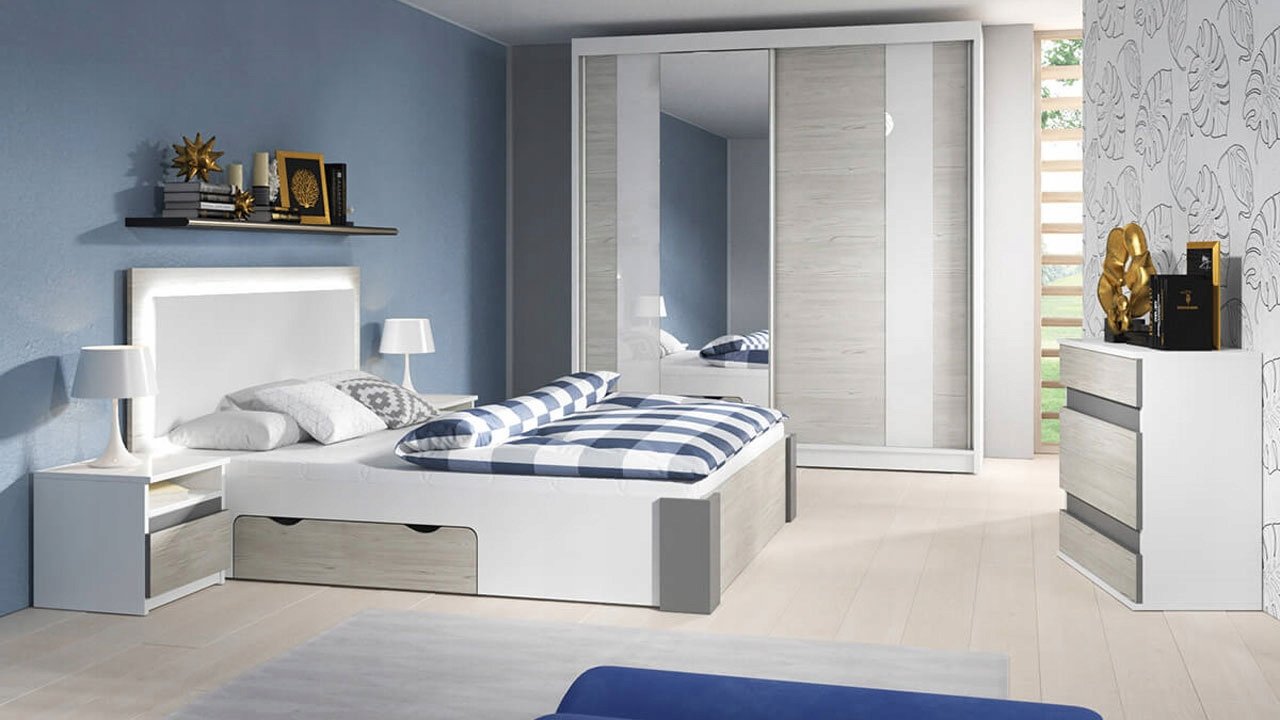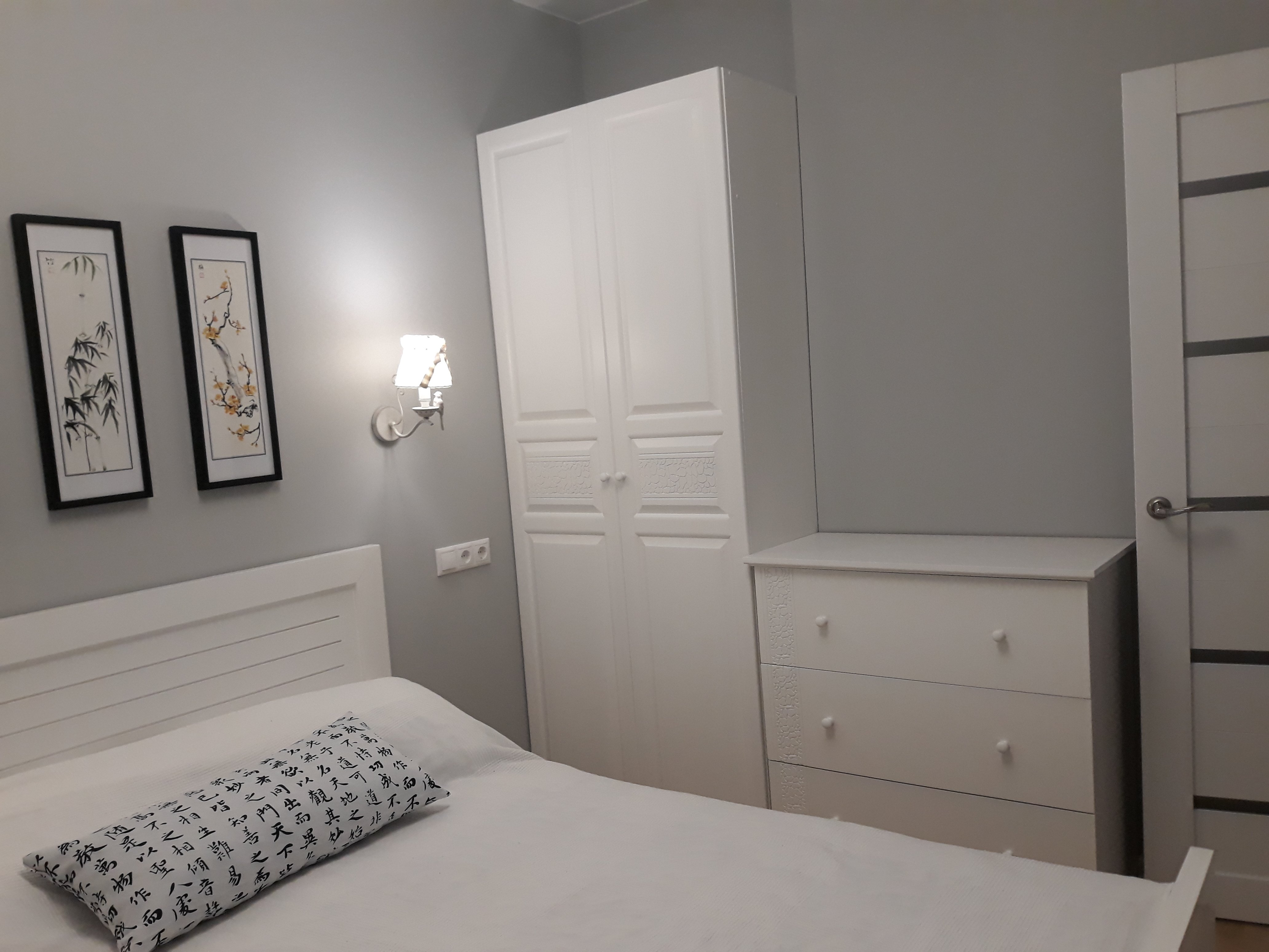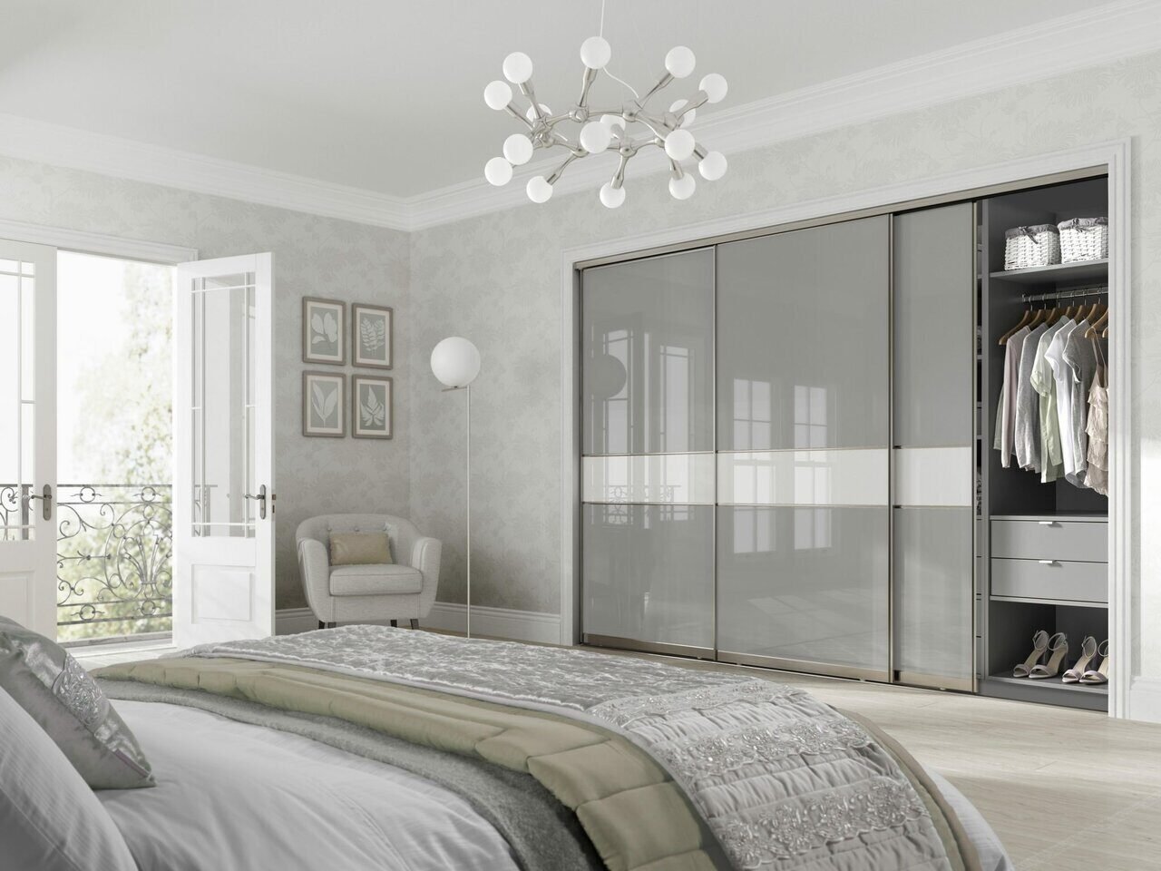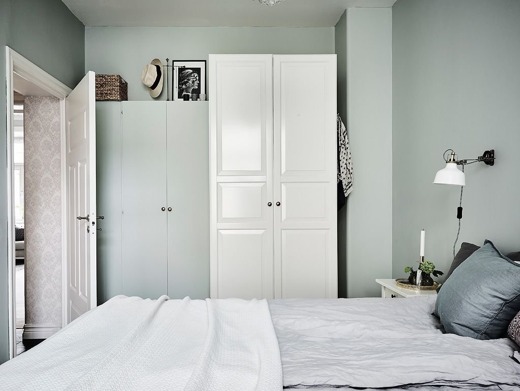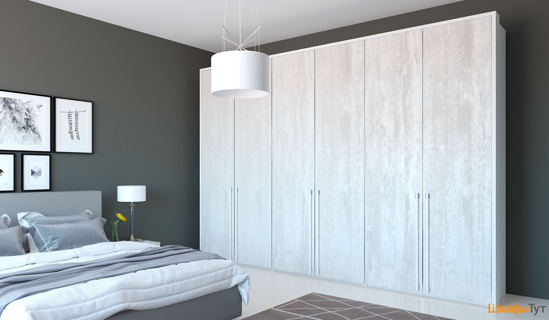 Белый шкаф в серой спальне