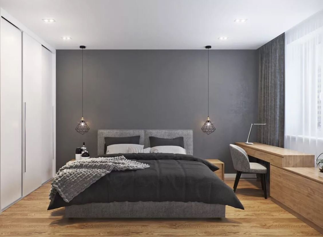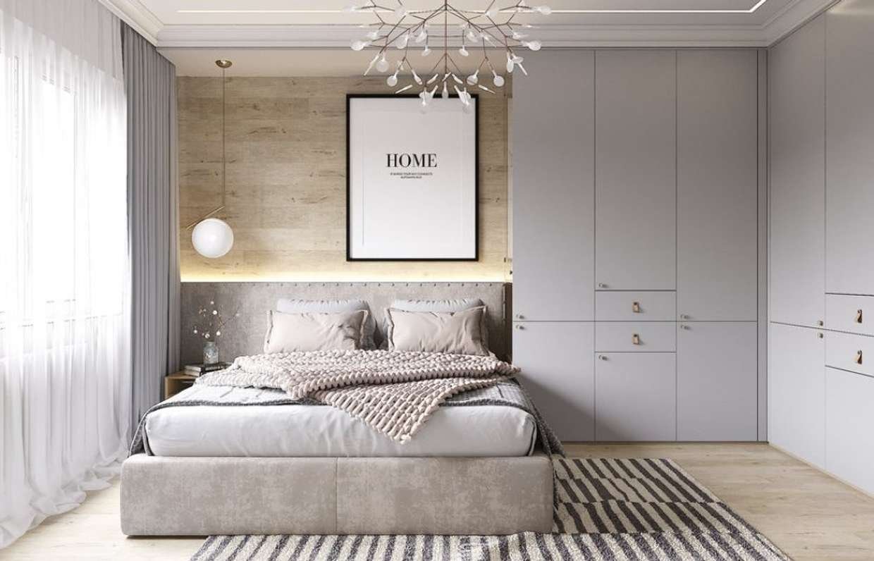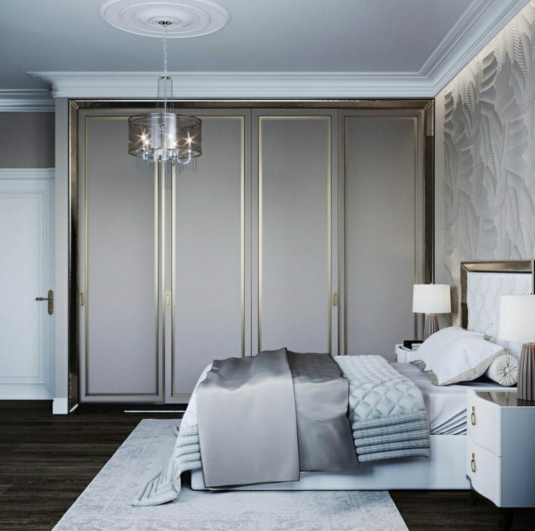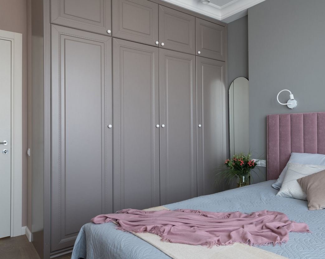Спальня в серых тонах со шкафом