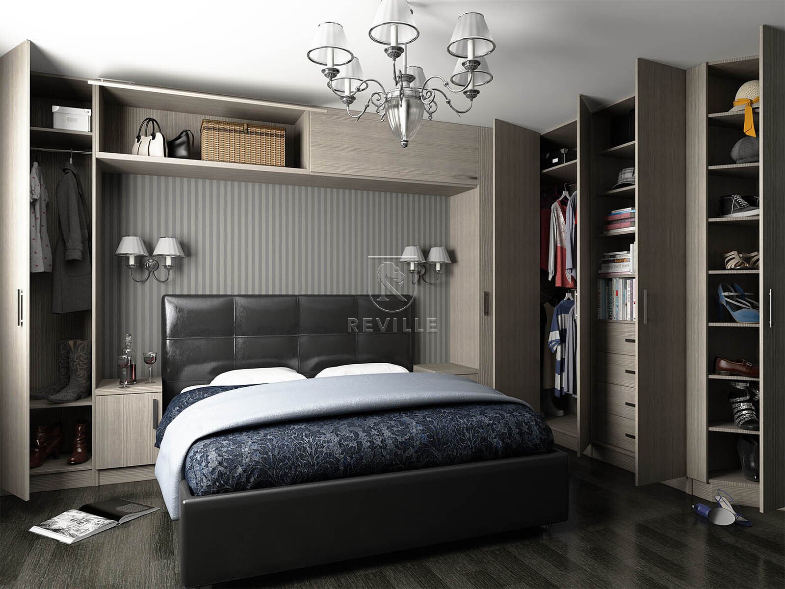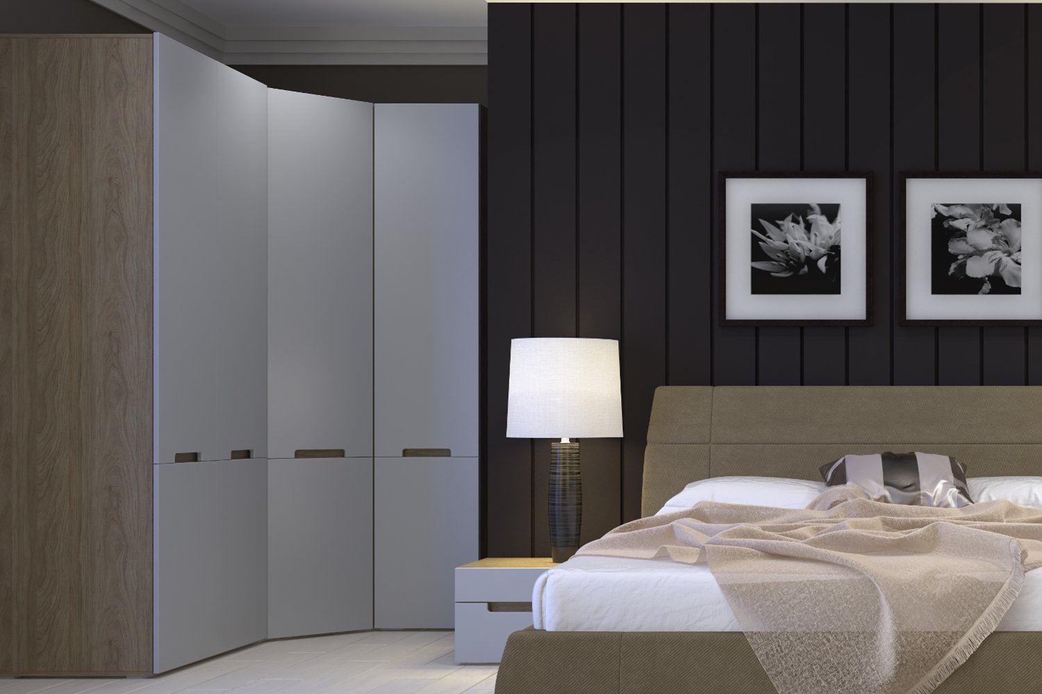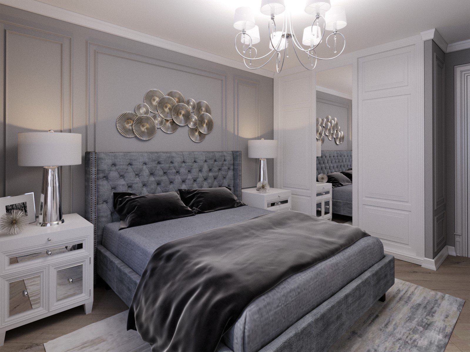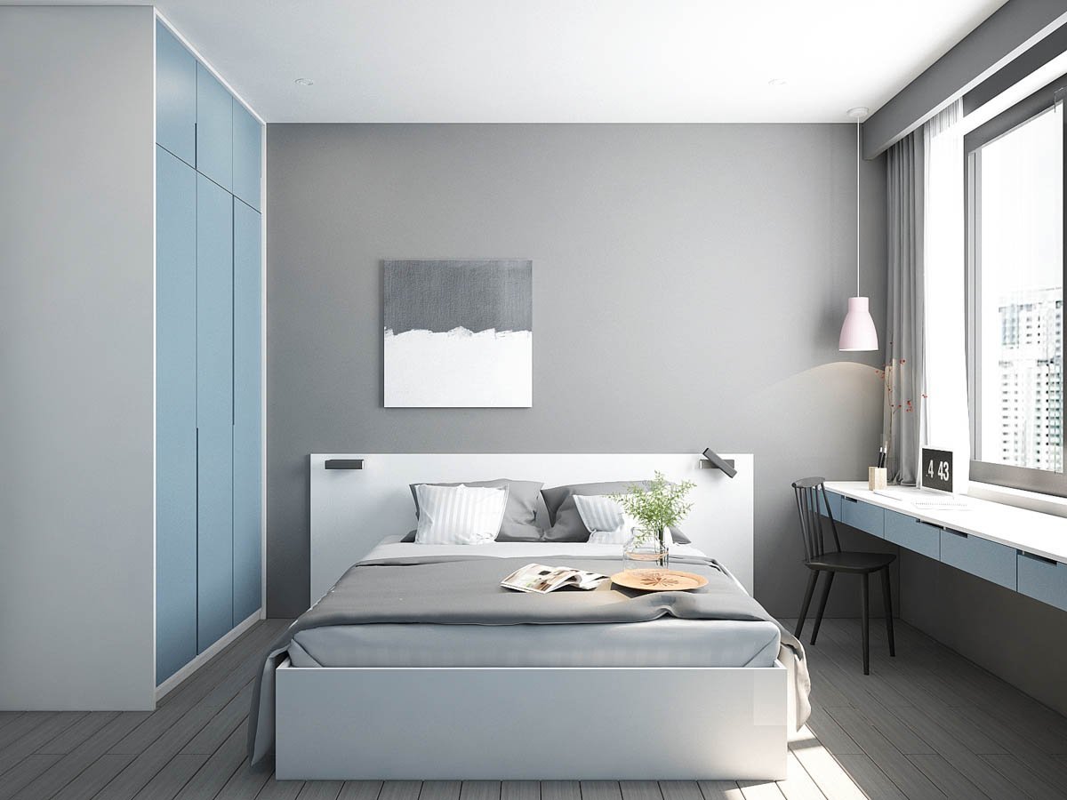 Спальня в серых тонах со шкафом
