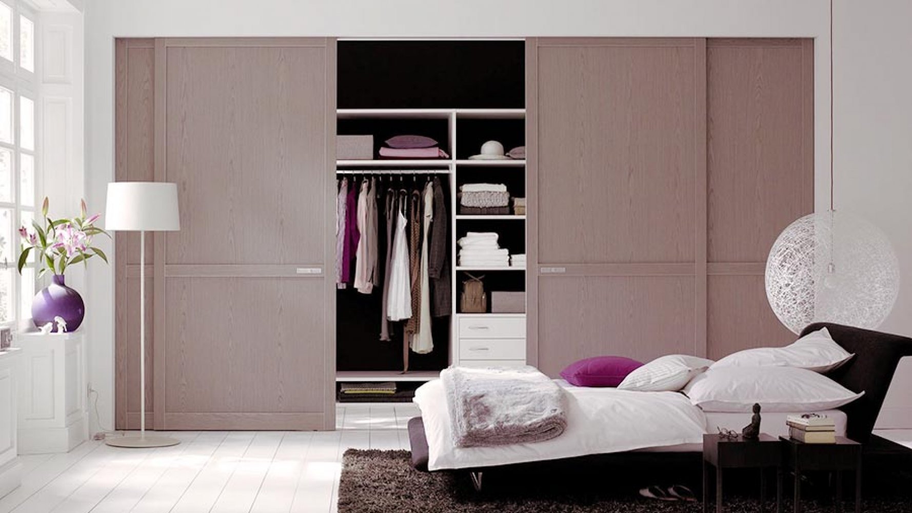 Белый шкаф в интерьере спальни