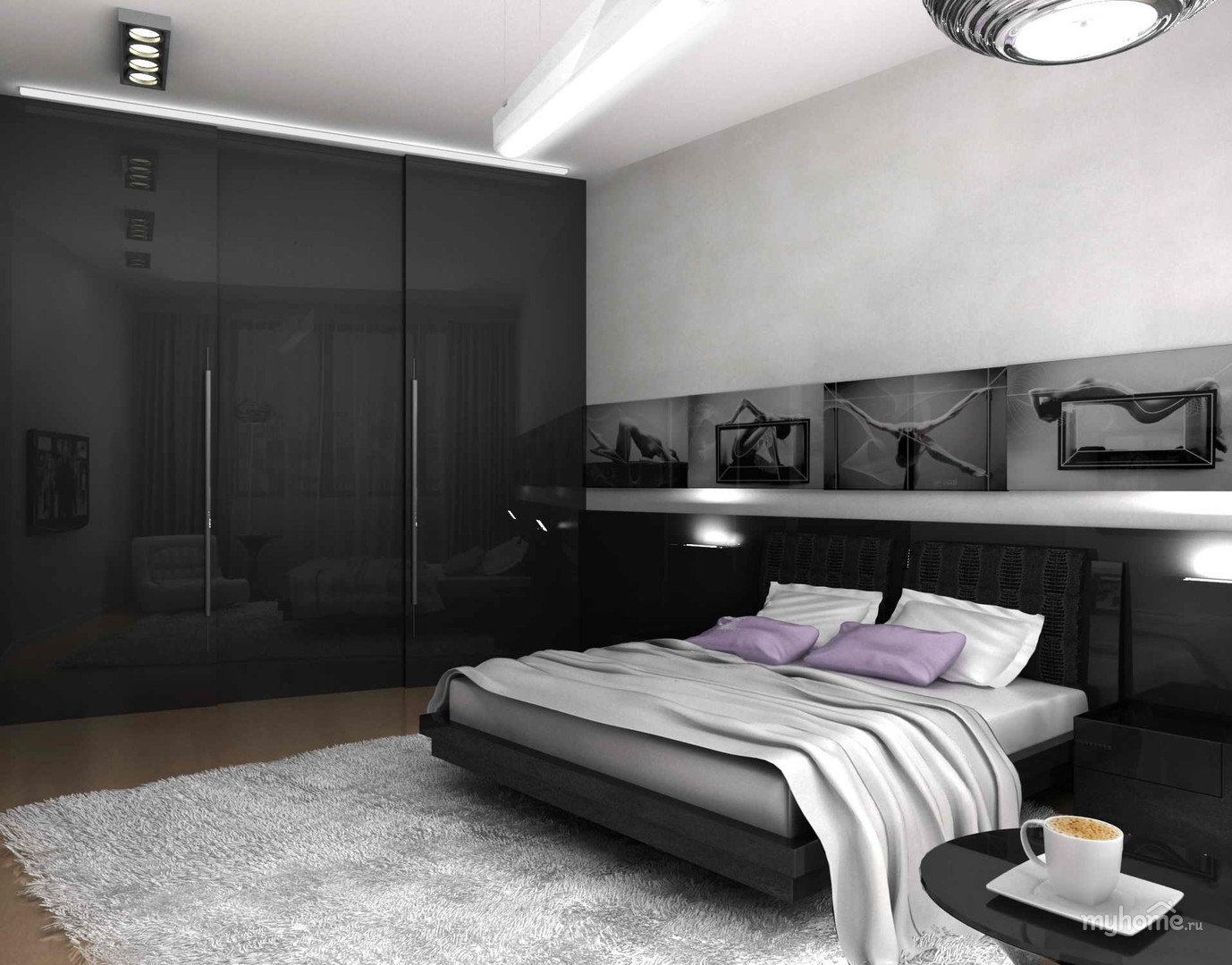 Интерьер спальни с черной мебелью