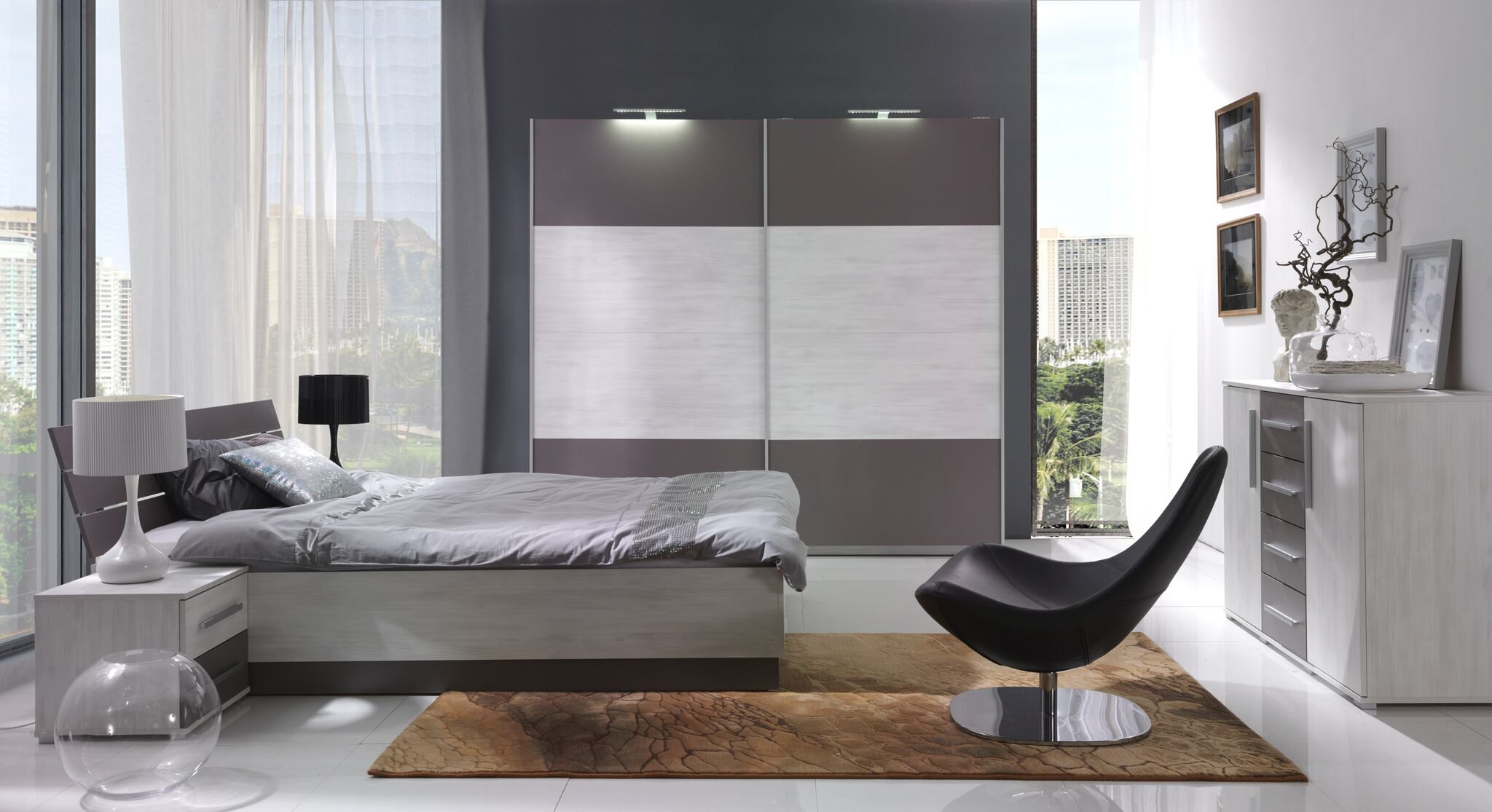 Спальный гарнитур серого цвета