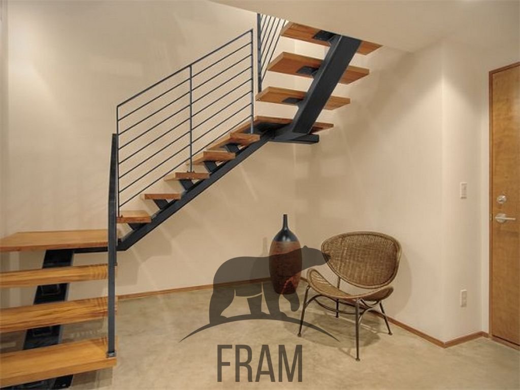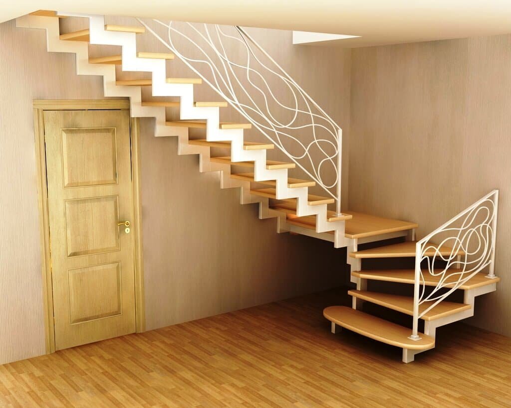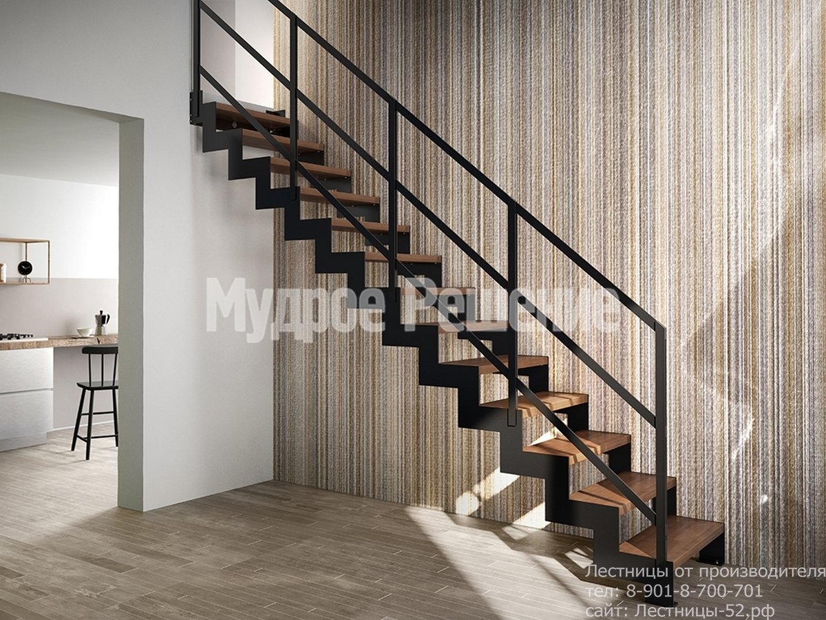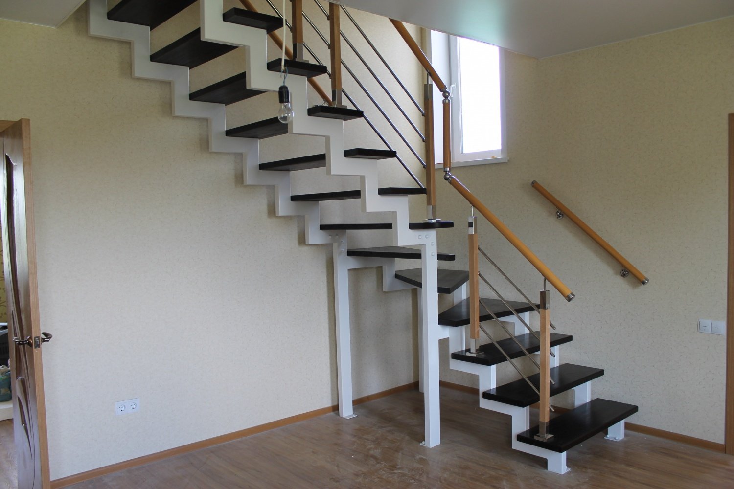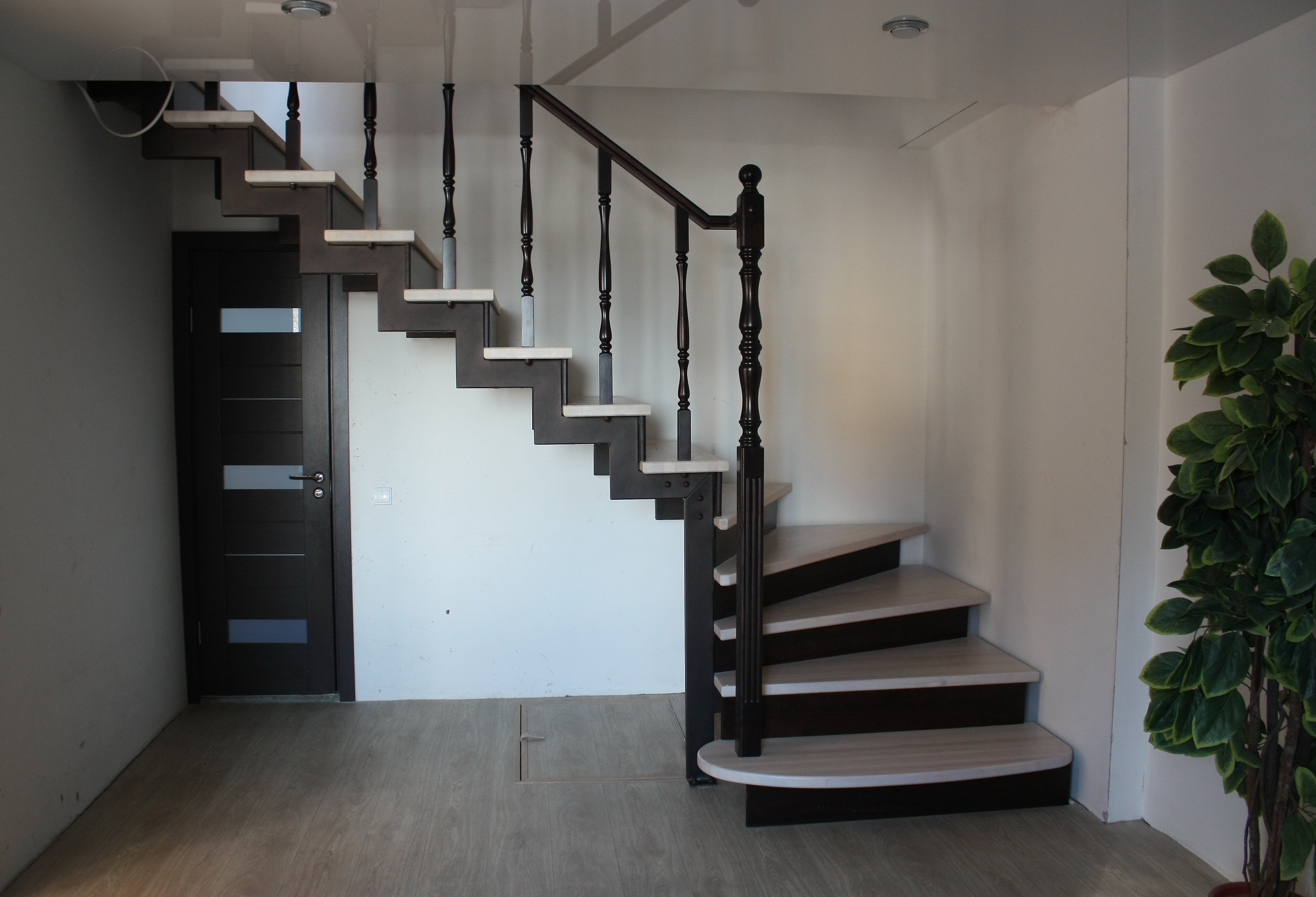 Лестница с забежными ступенями на 180 на второй на металлокаркасе этаж