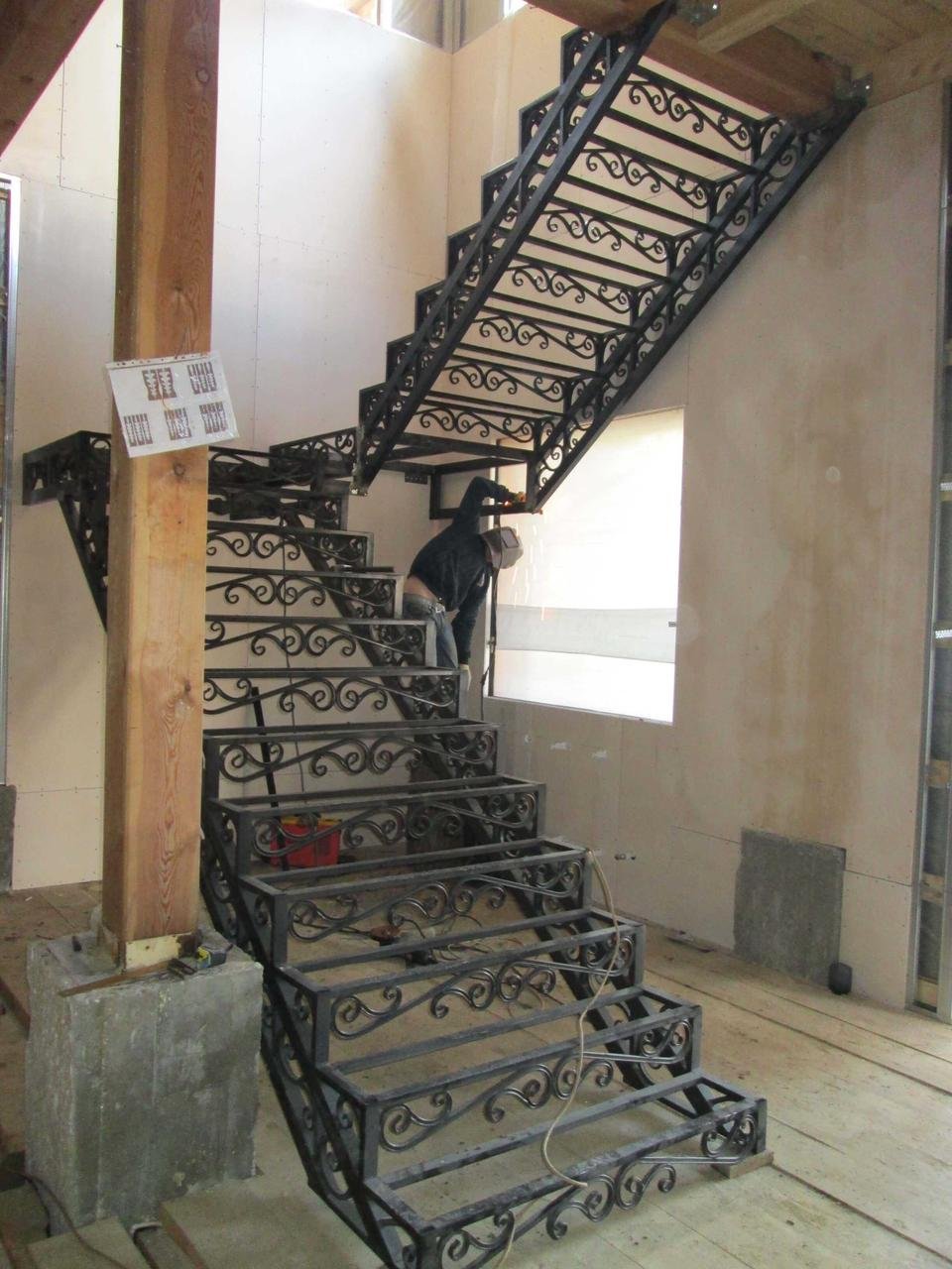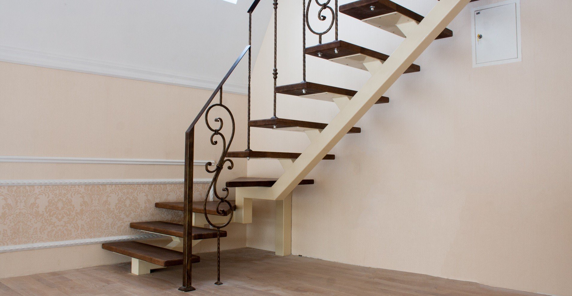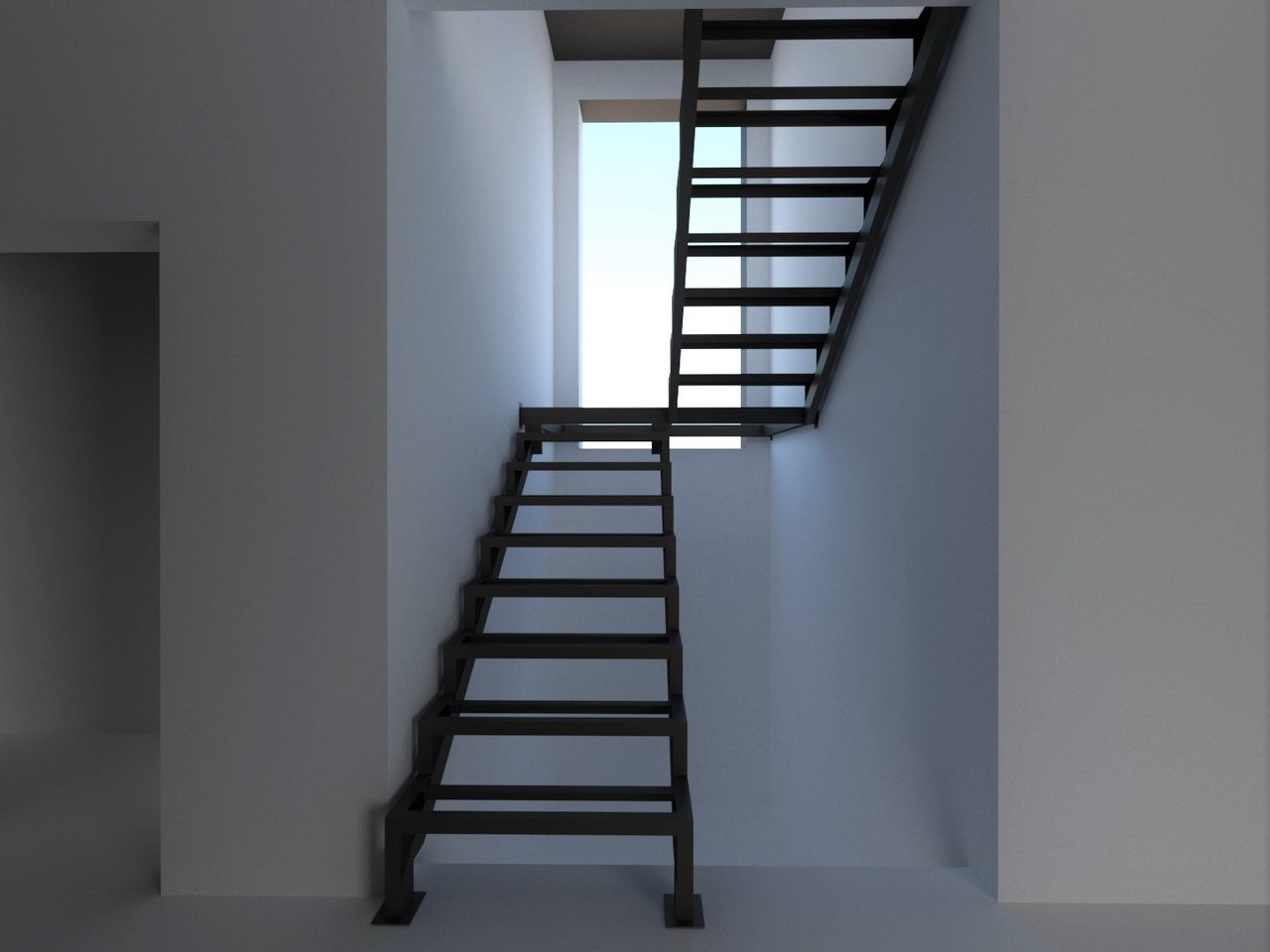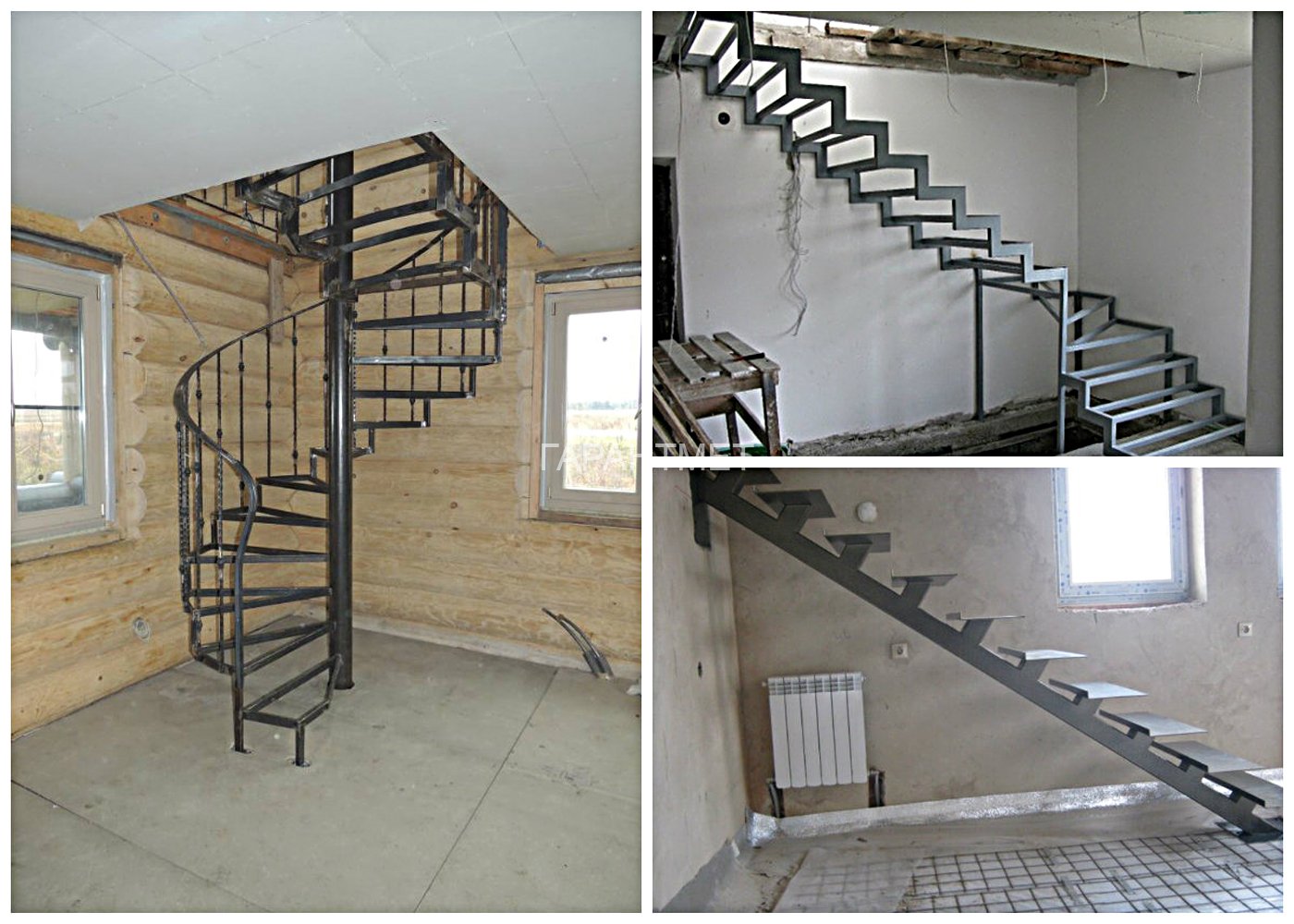 Лестница с забежными ступенями на 180 на второй на металлокаркасе этаж