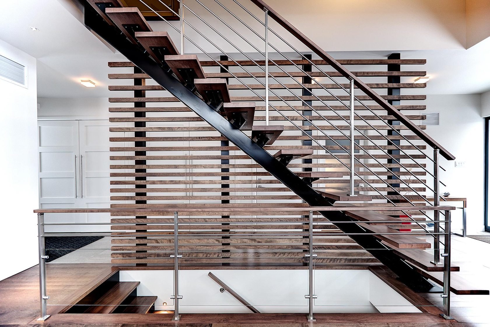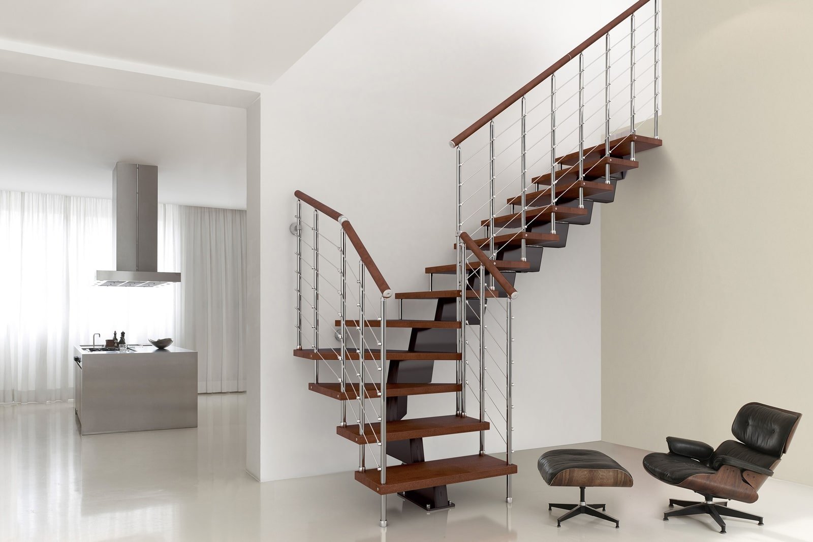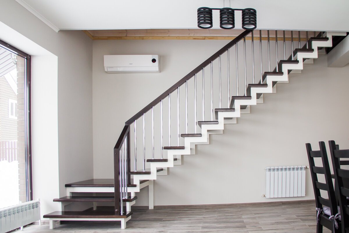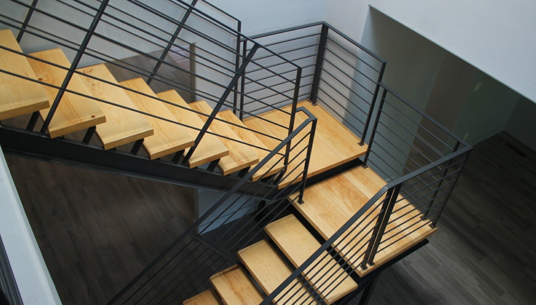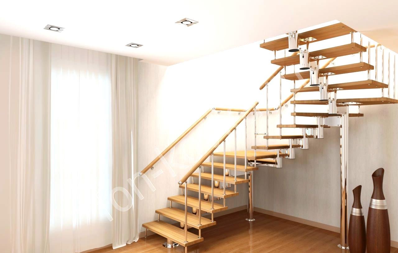 Лестница с забежными ступенями на 180 на второй на металлокаркасе этаж