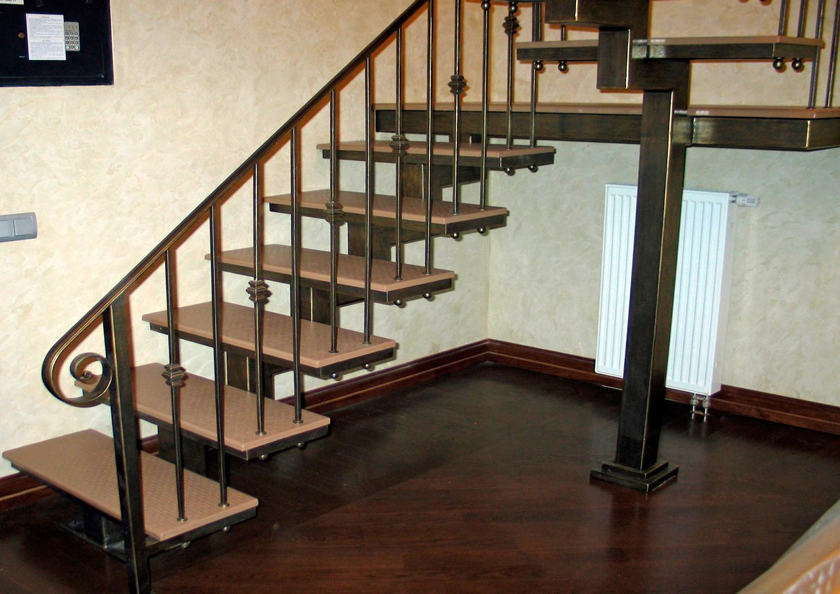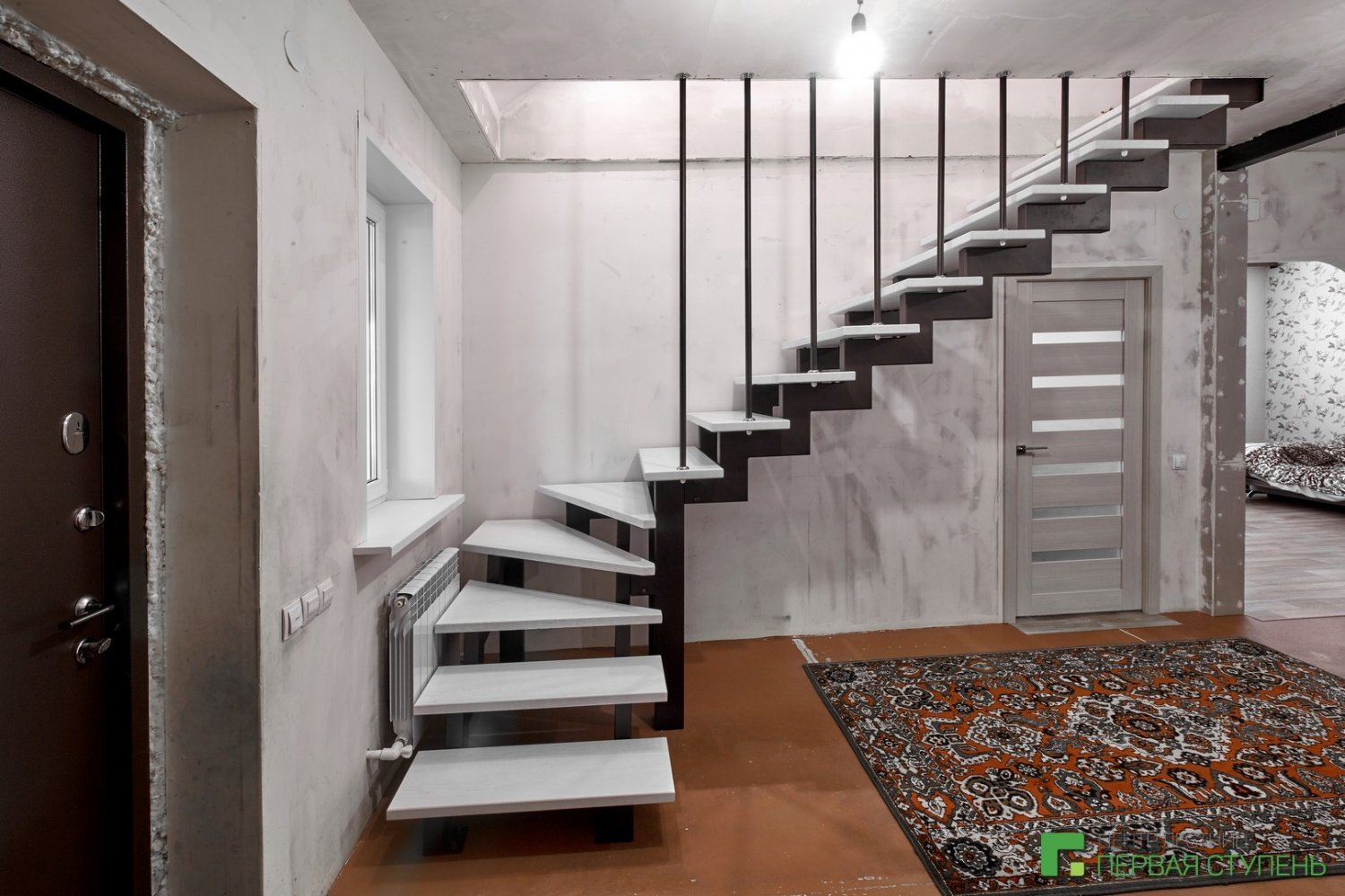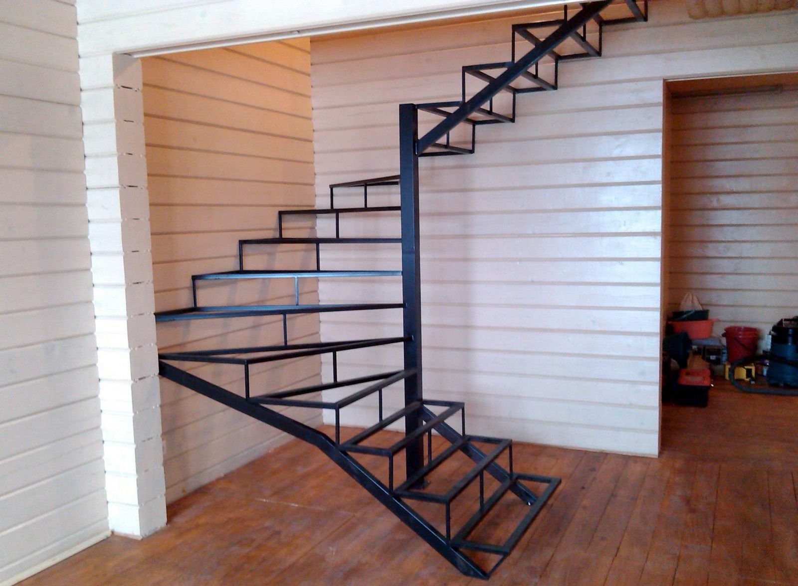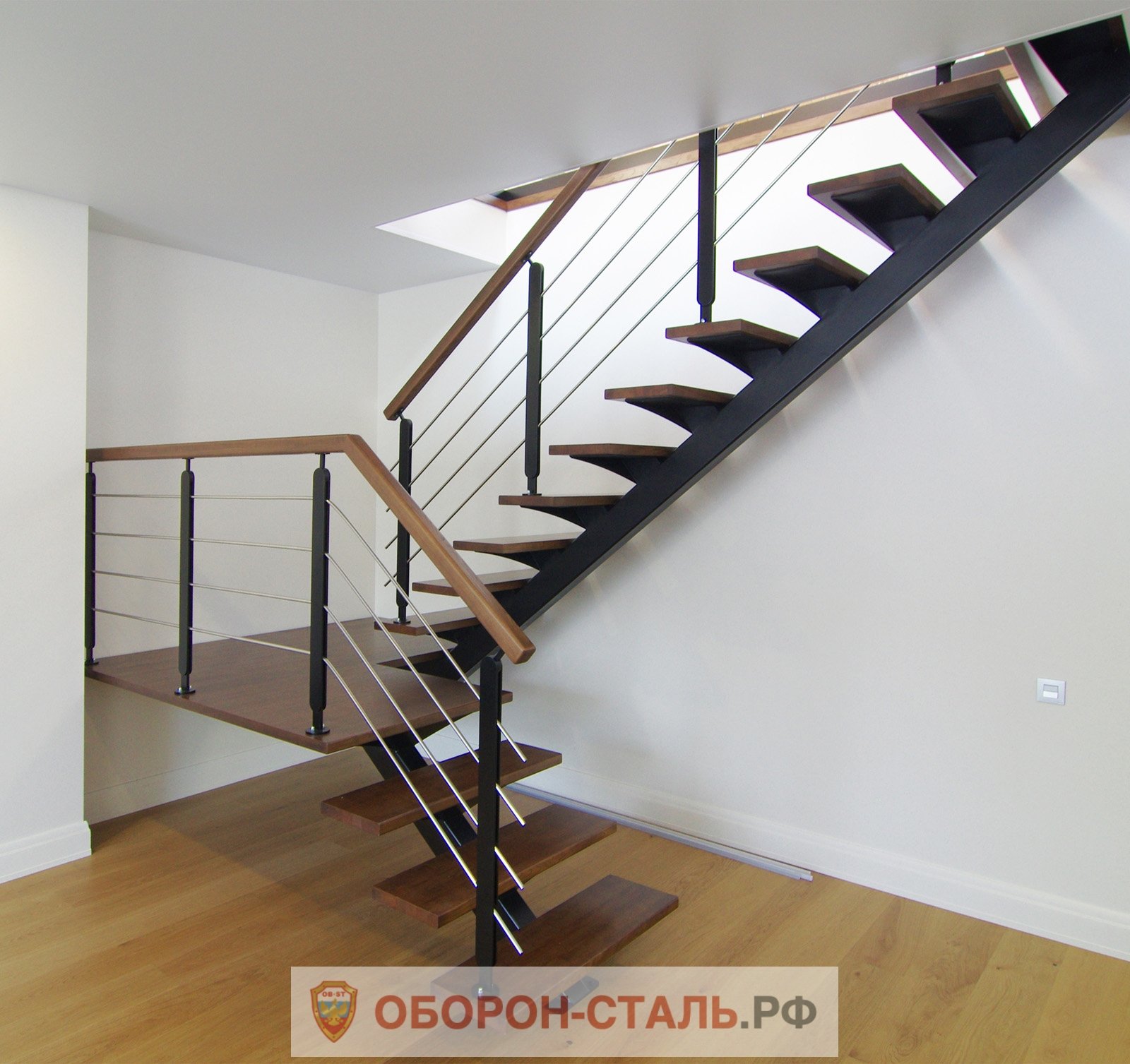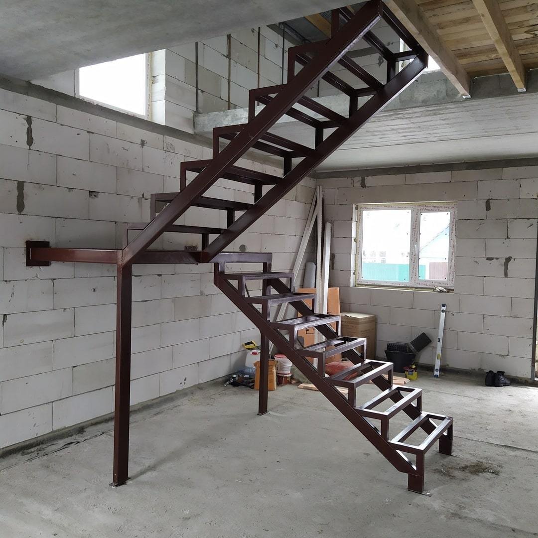 Лестница п-образная с площадкой на второй этаж на металлокаркасе