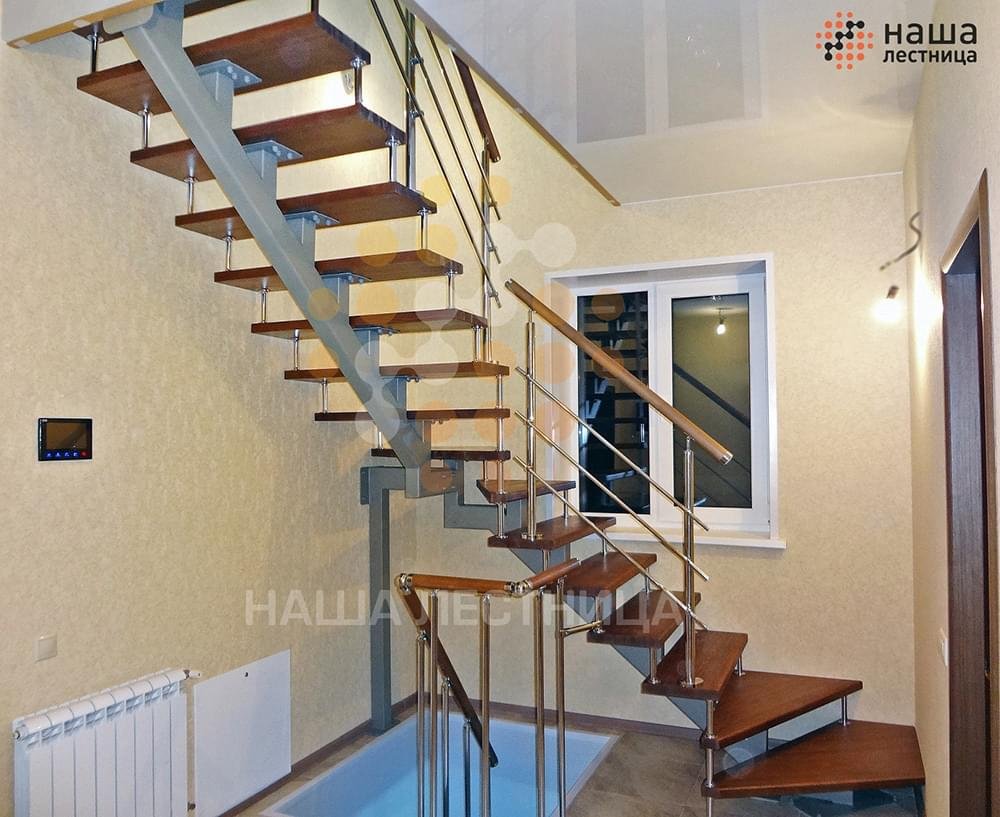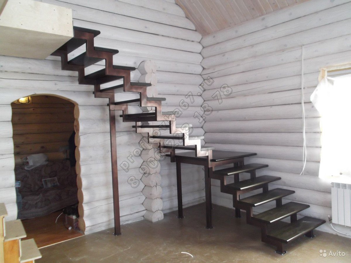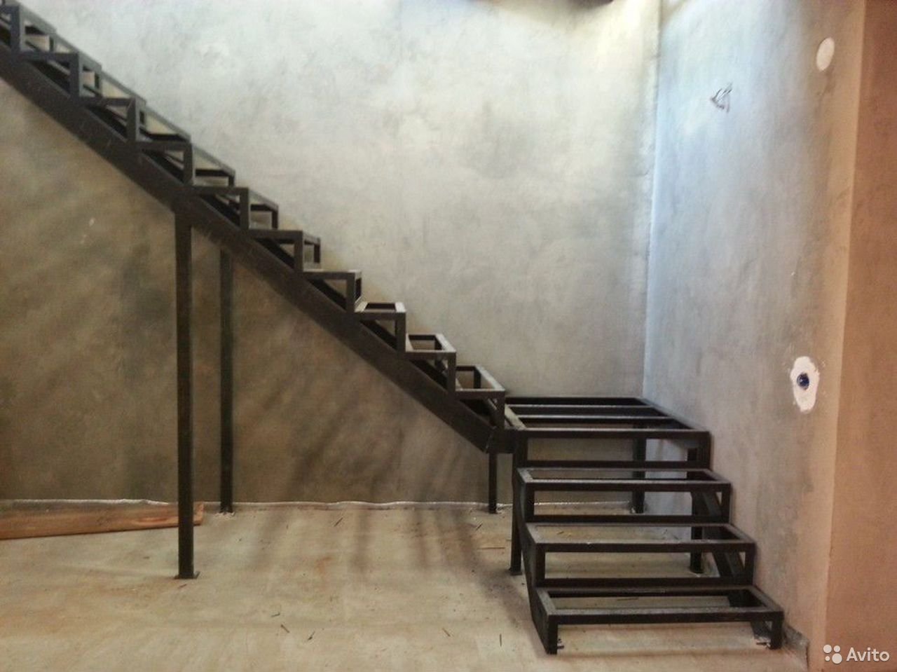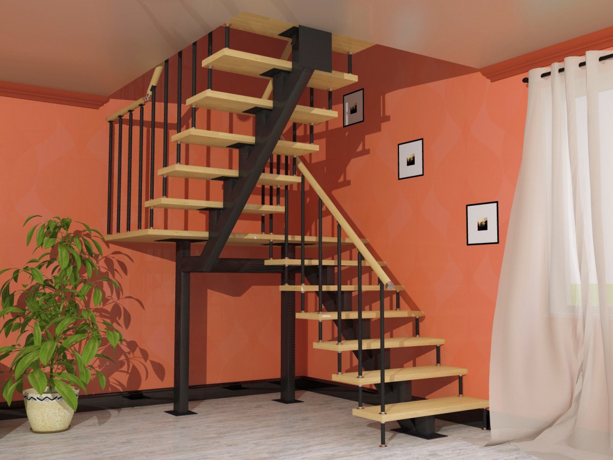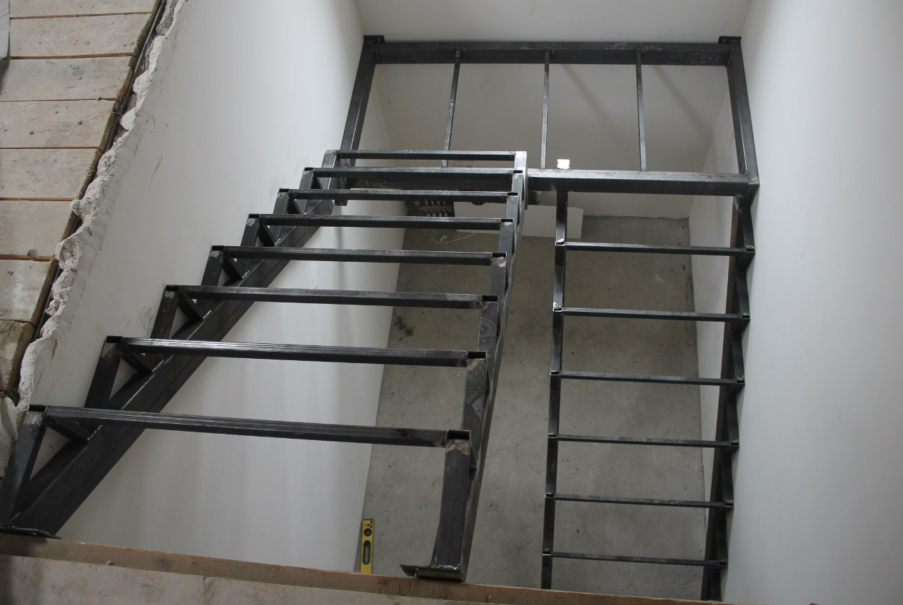 Лестница п-образная с площадкой на второй этаж на металлокаркасе