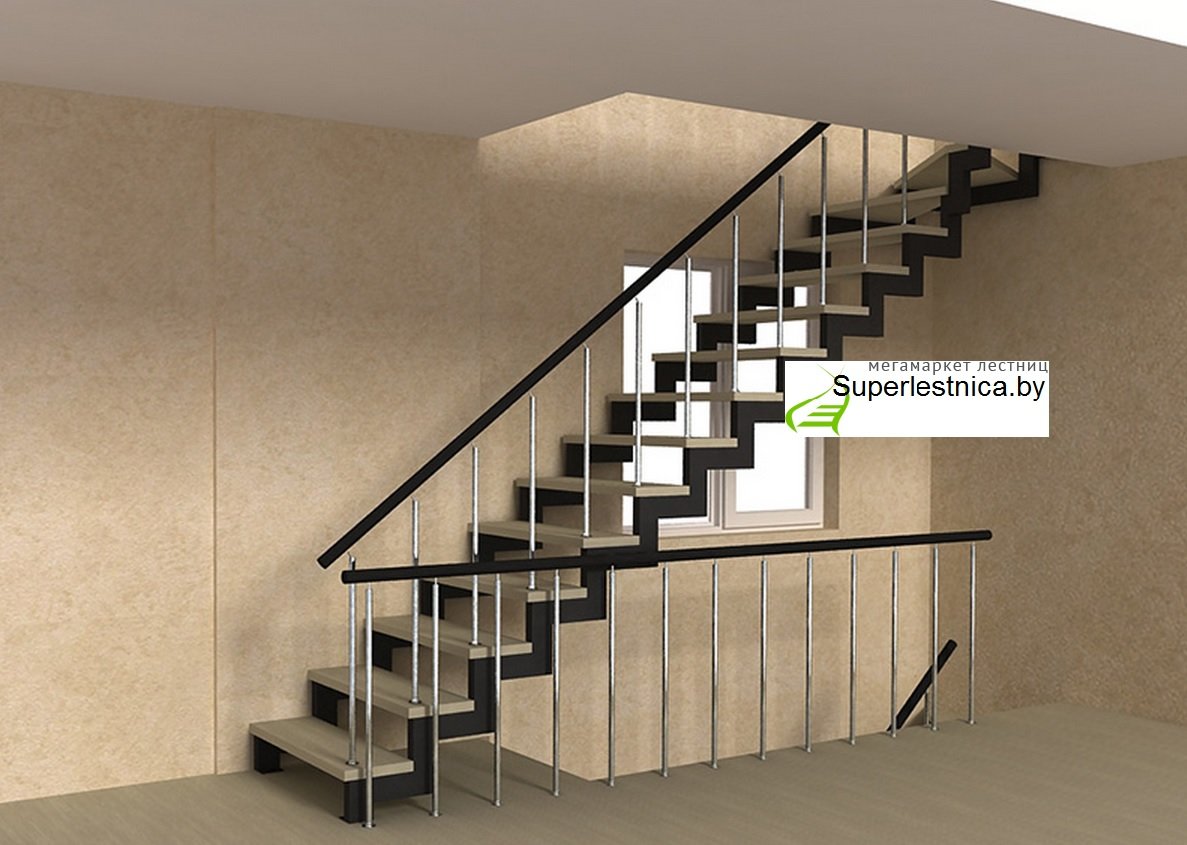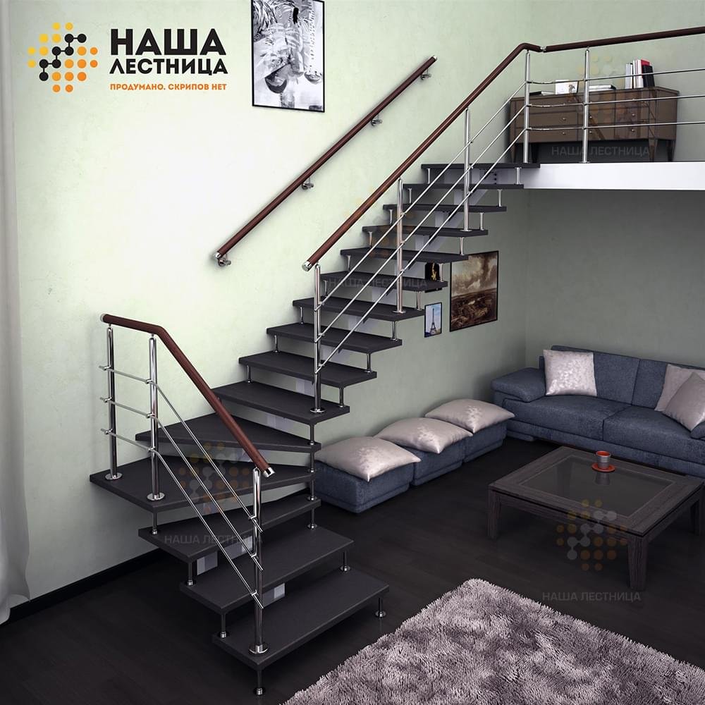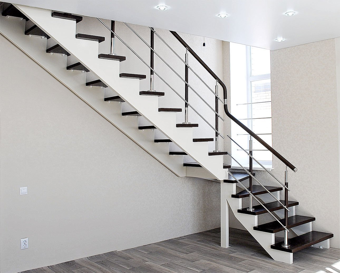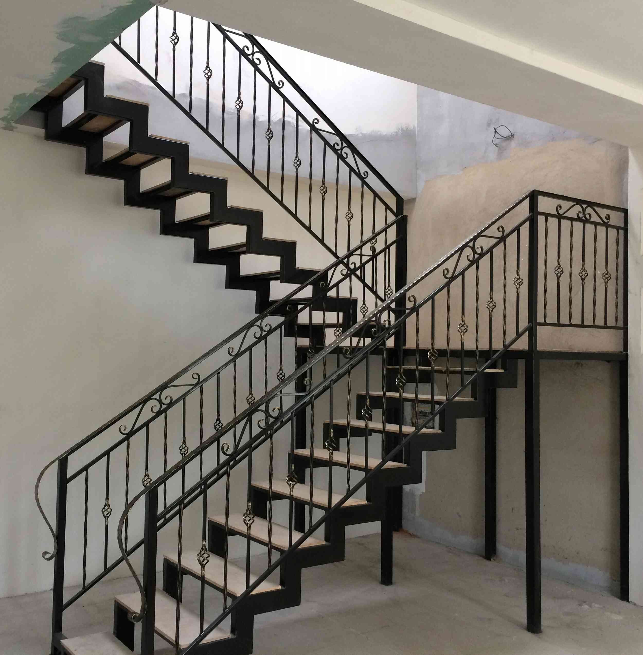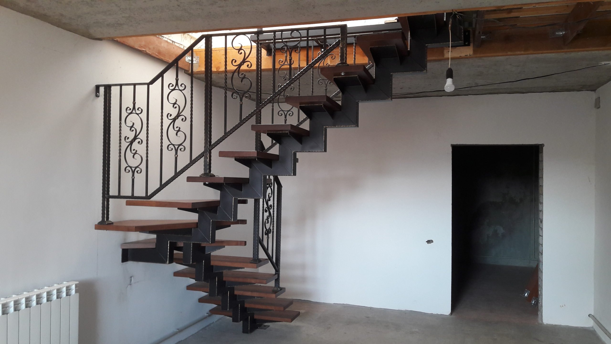 Лестница п-образная с площадкой на второй этаж на металлокаркасе
