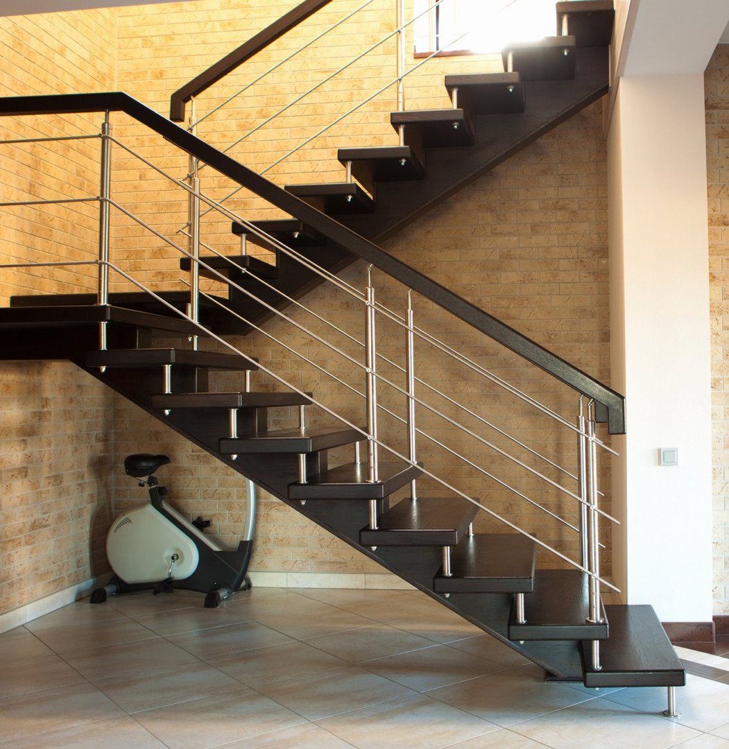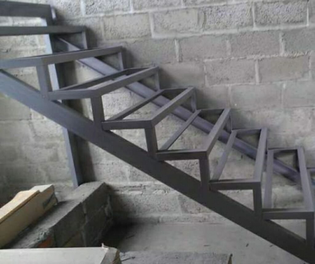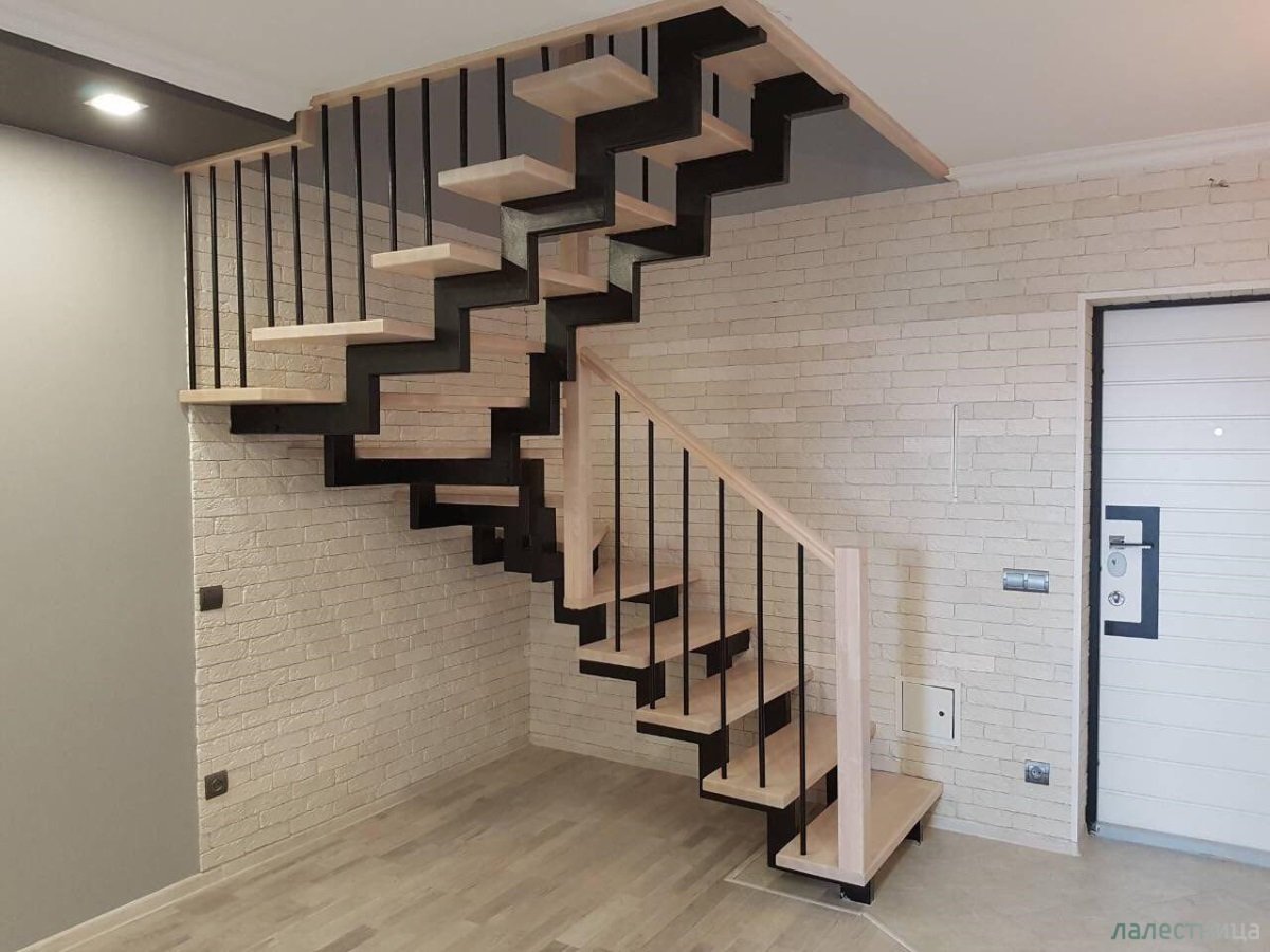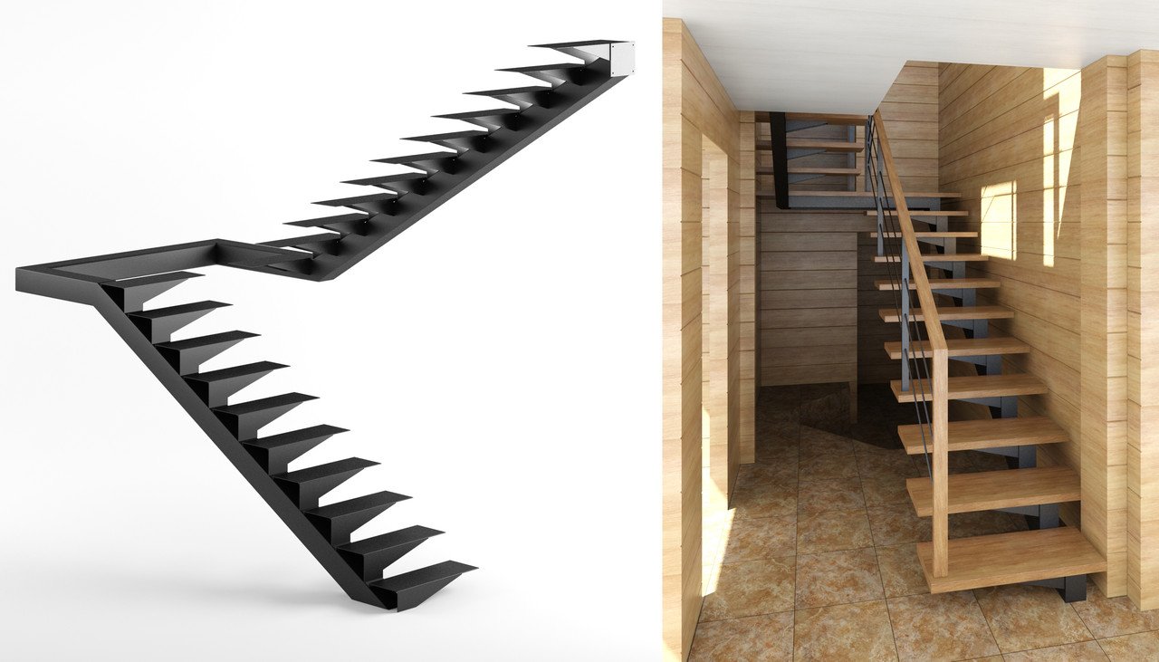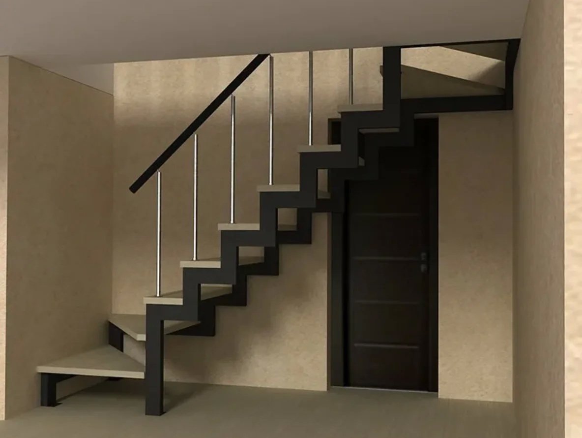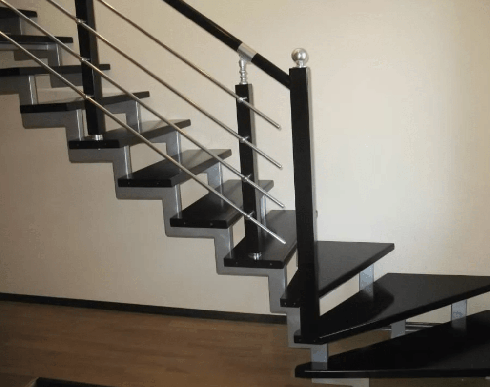 Лестница п-образная с площадкой на второй этаж на металлокаркасе