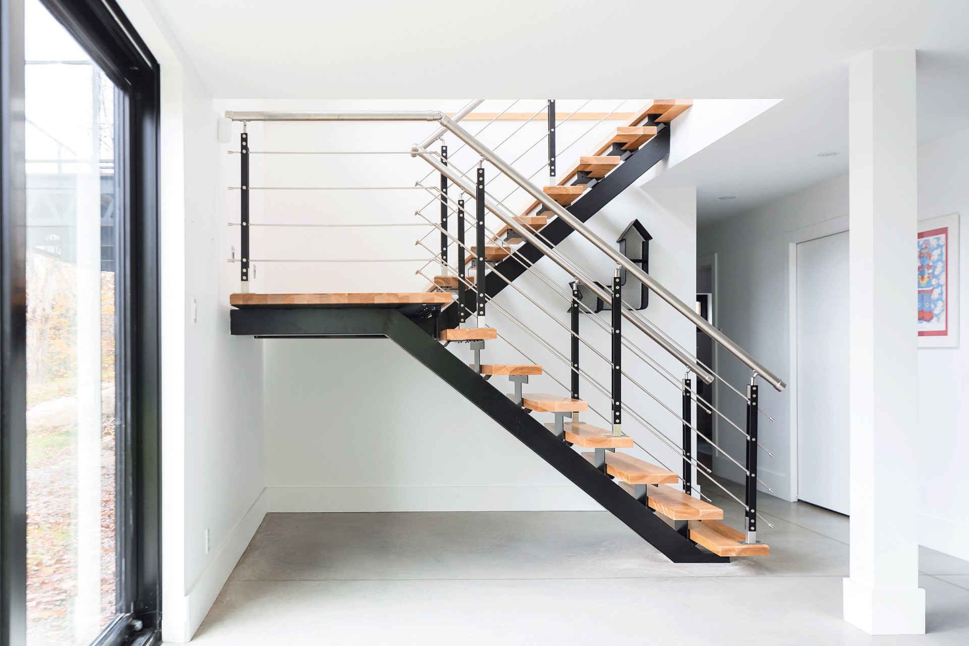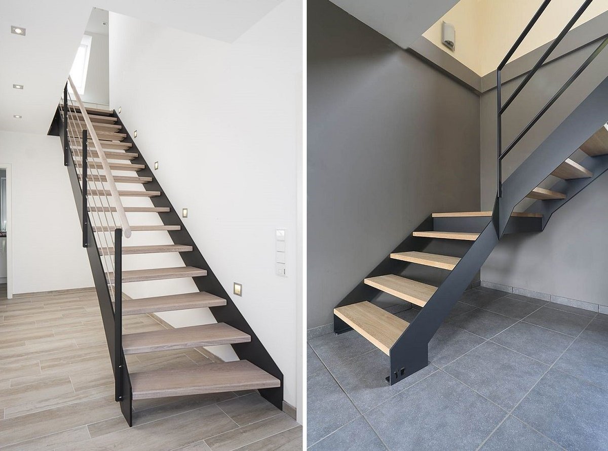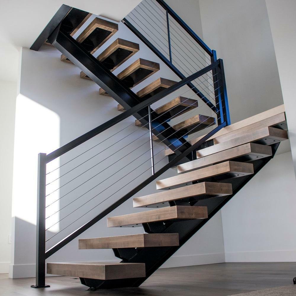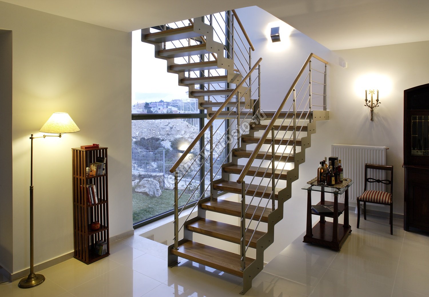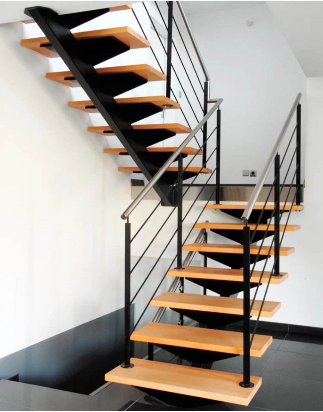 Лестница п-образная с площадкой на второй этаж на металлокаркасе