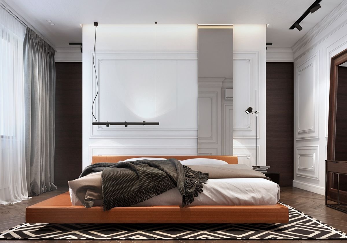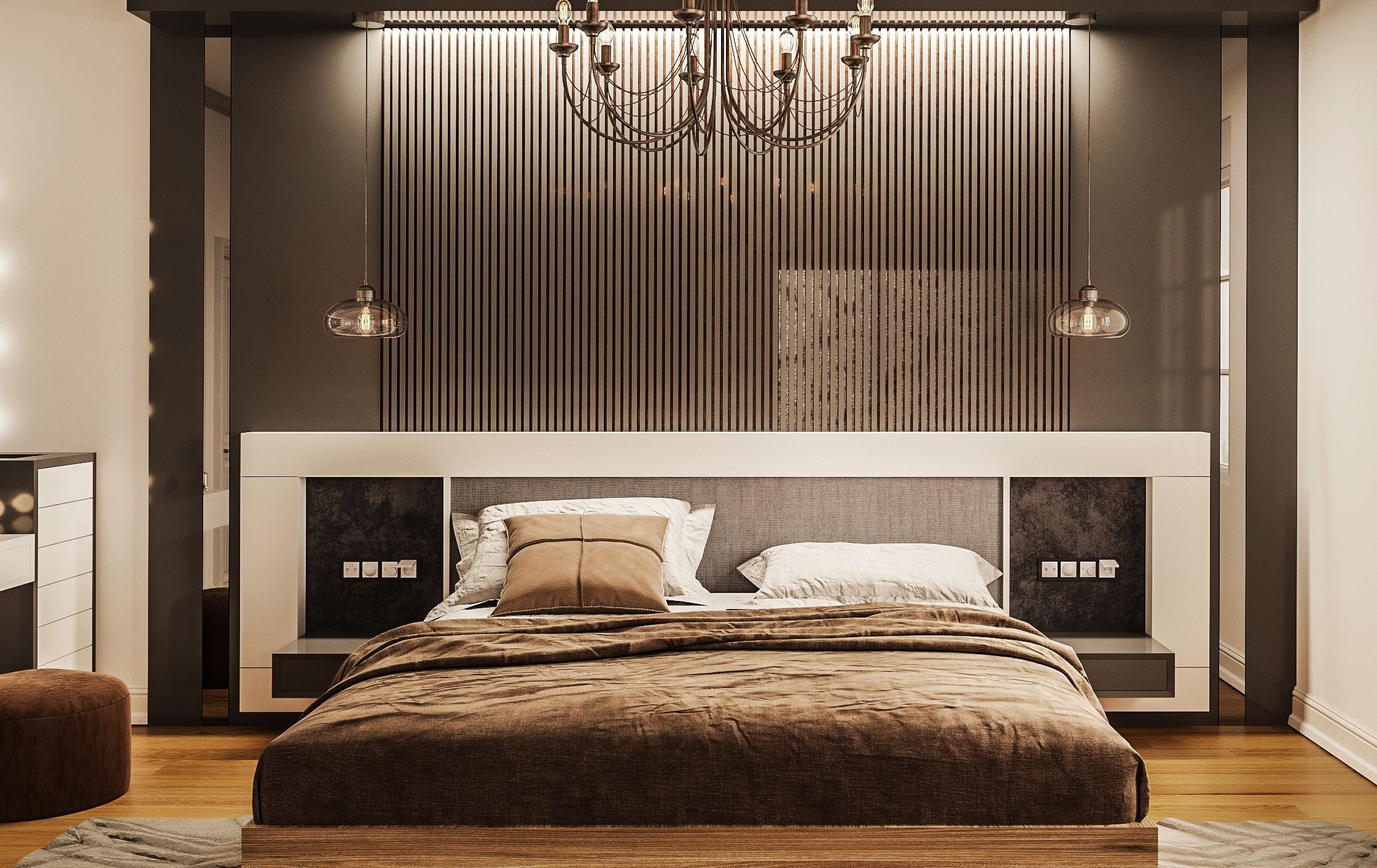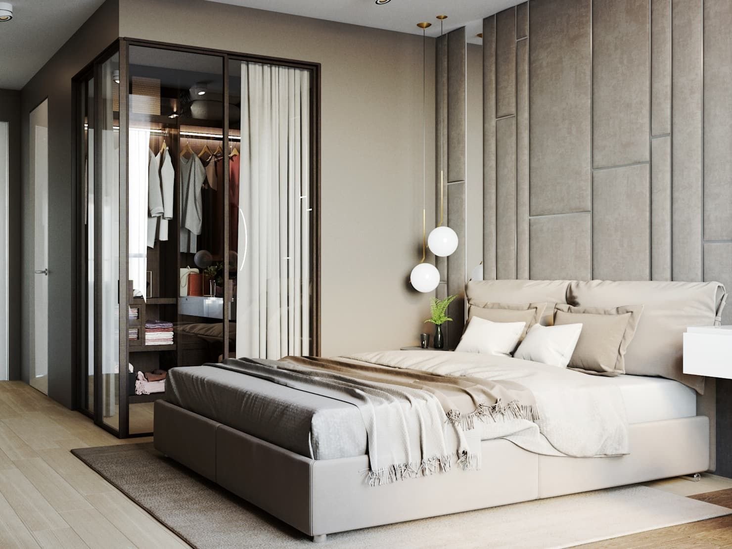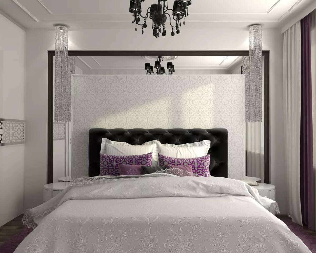 Спальня с гардеробной за изголовьем
