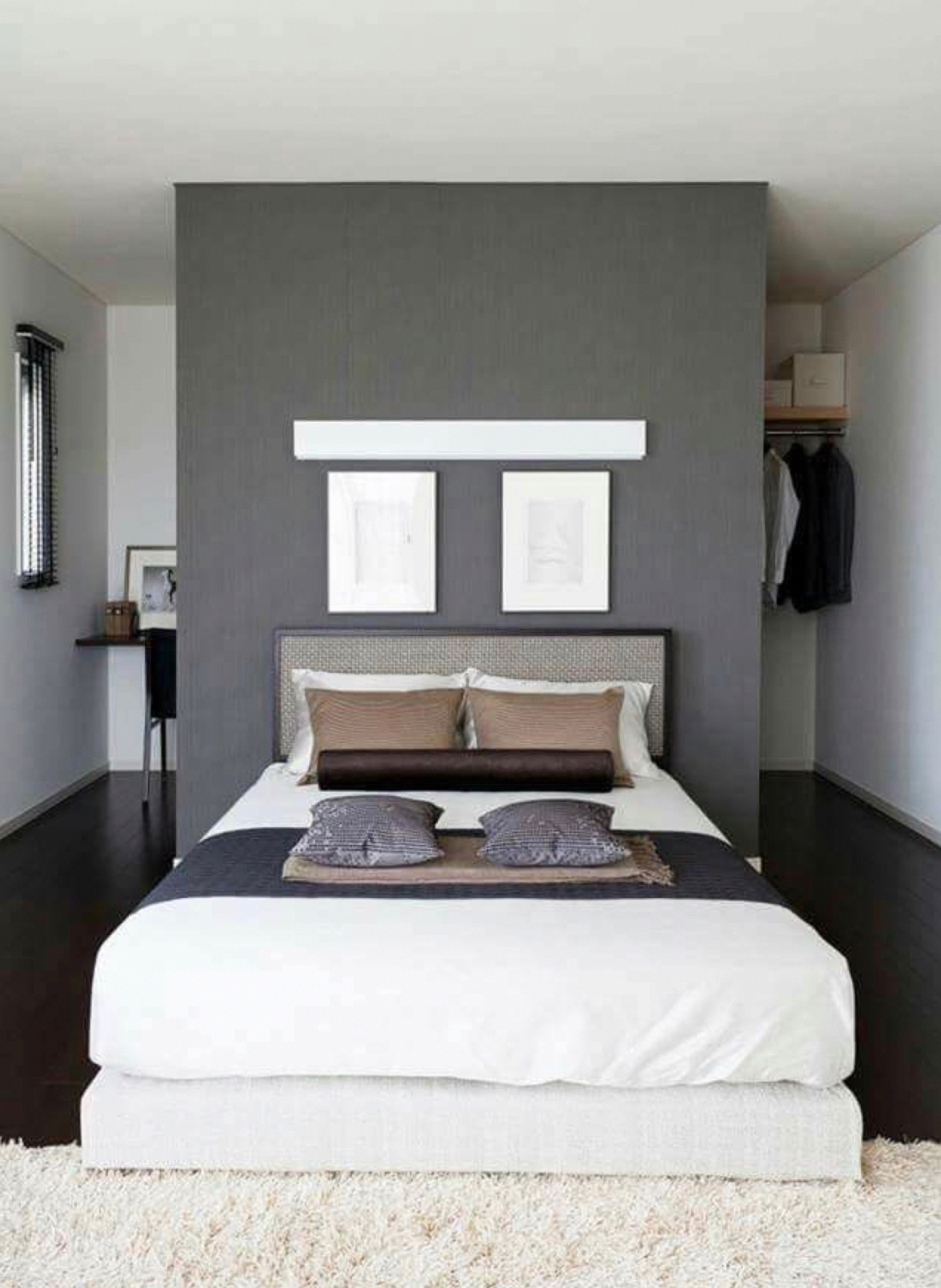Гардеробная в спальне за изголовьем кровати