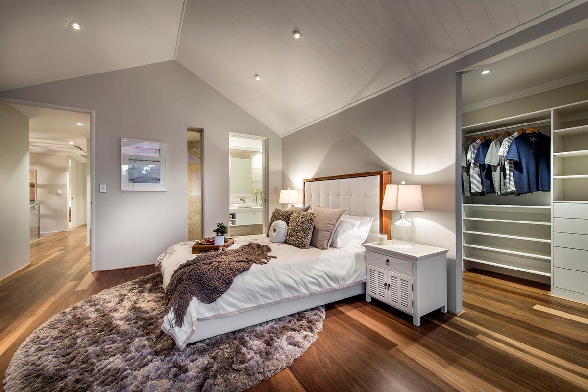 Спальня с гардеробными сзади кровати