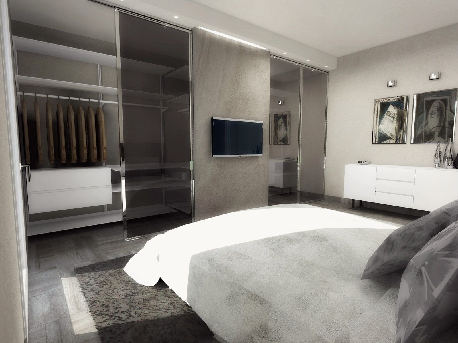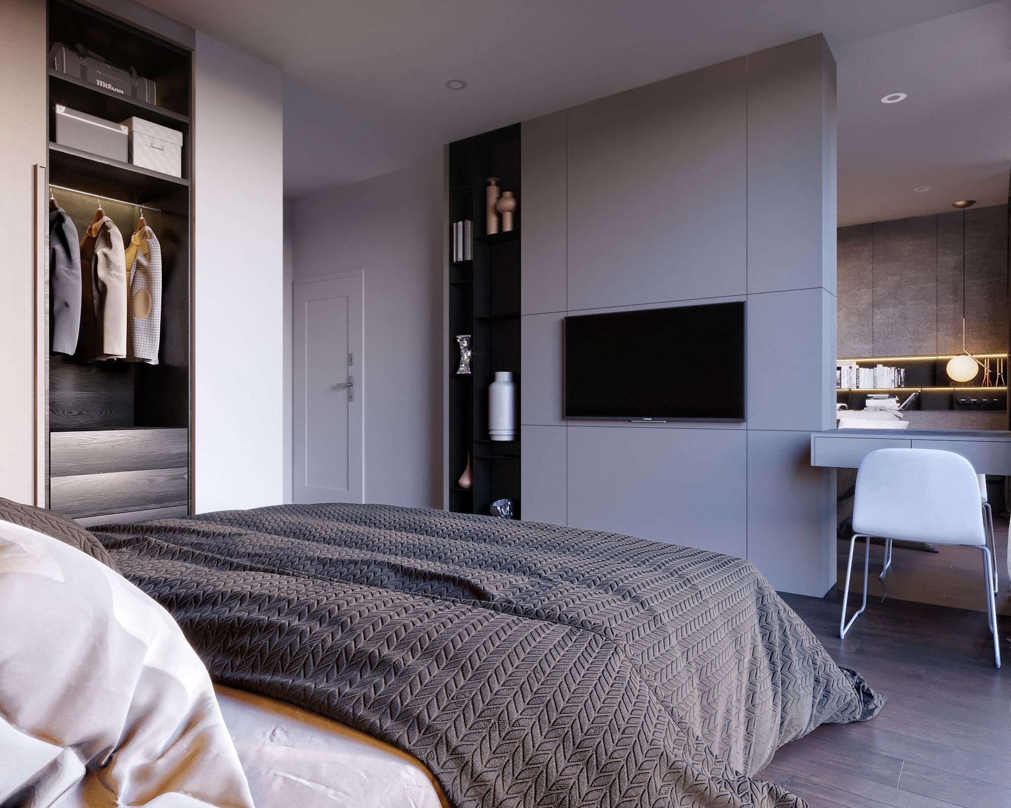Спальня с гардеробной и телевизором