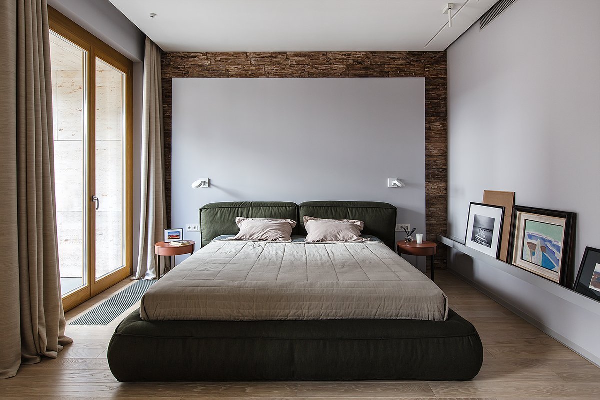 Спальня со шкафом в изголовье