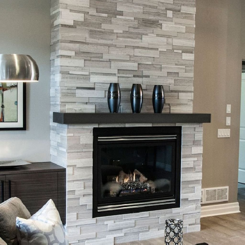 Камин из серого кирпича