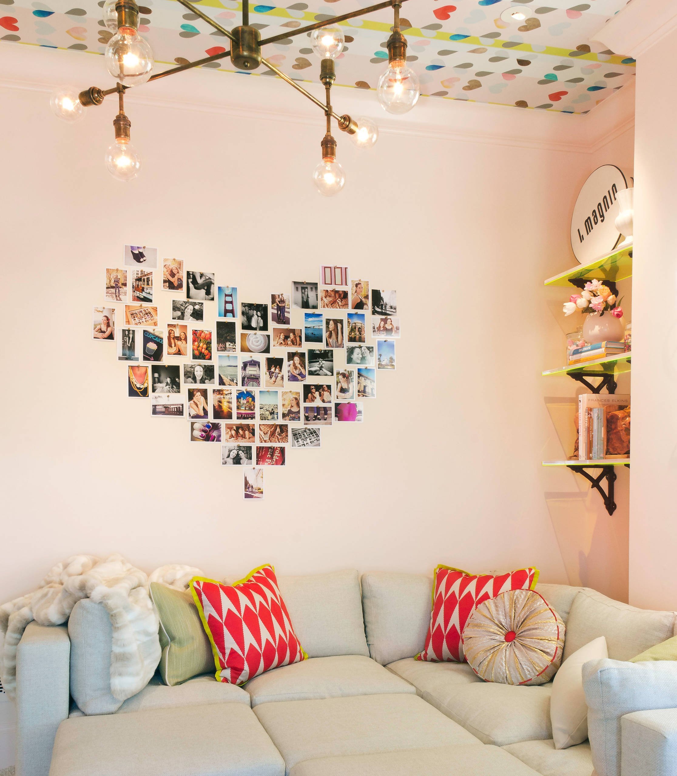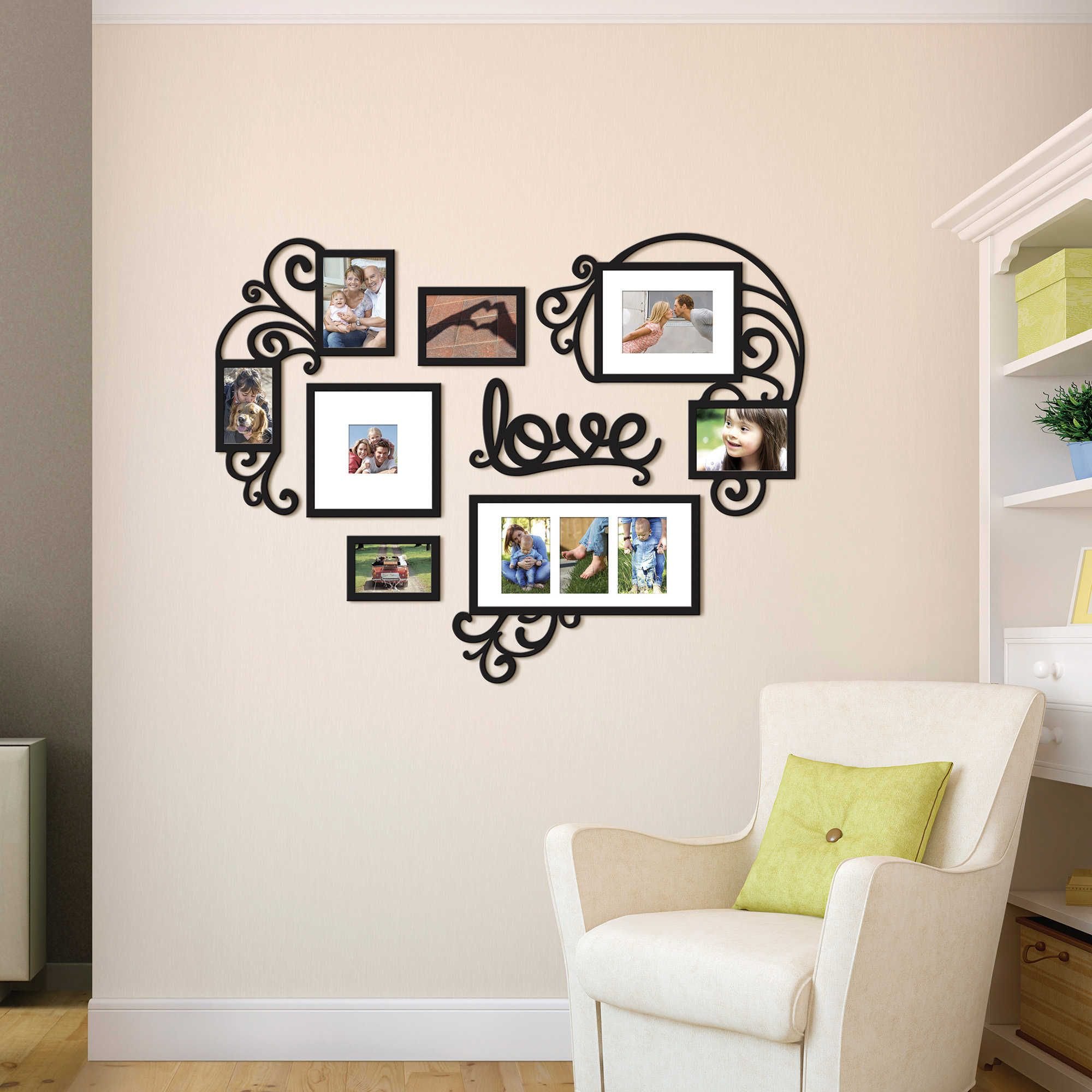 Сердце из фоторамок на стене