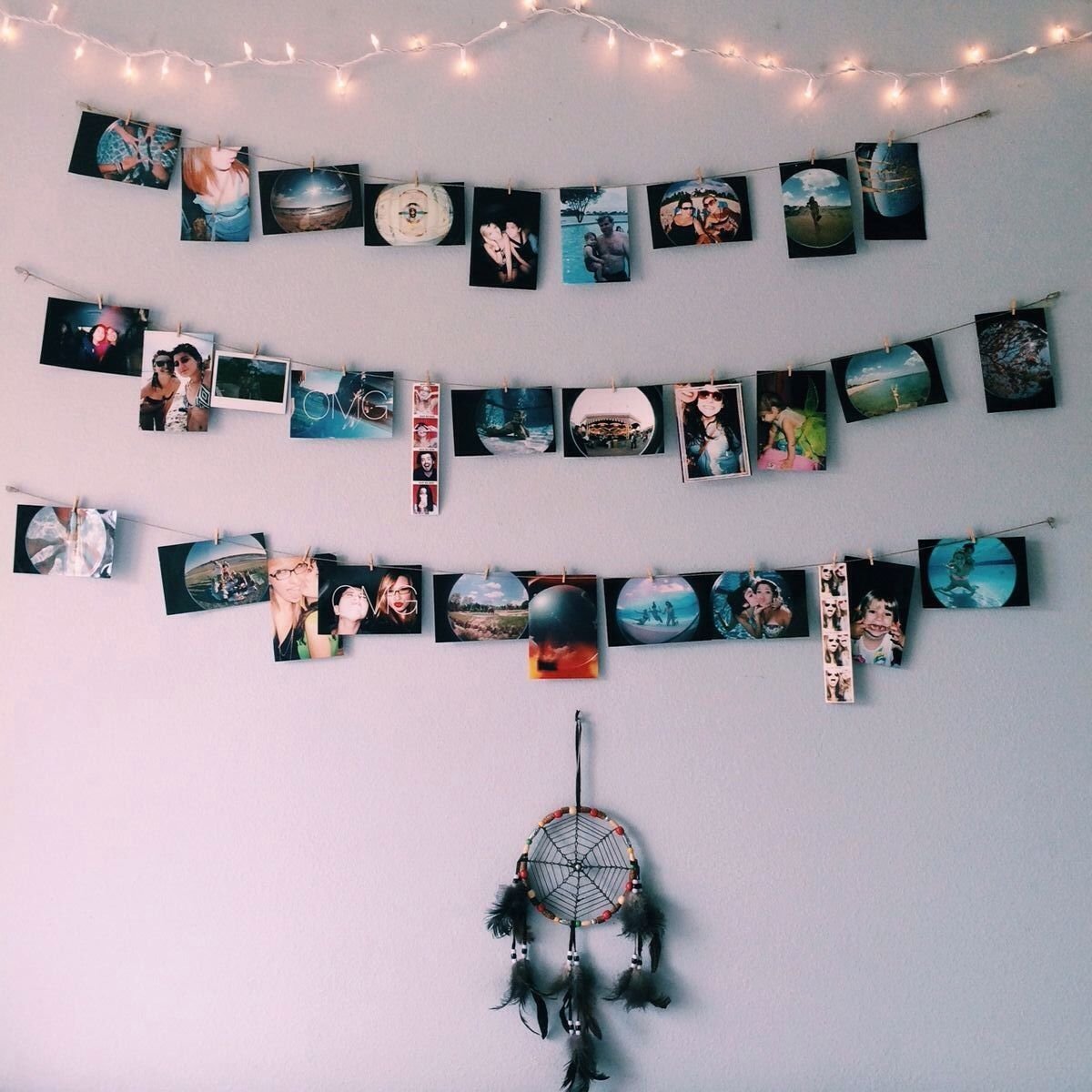 Гирлянда с фотографиями на стене