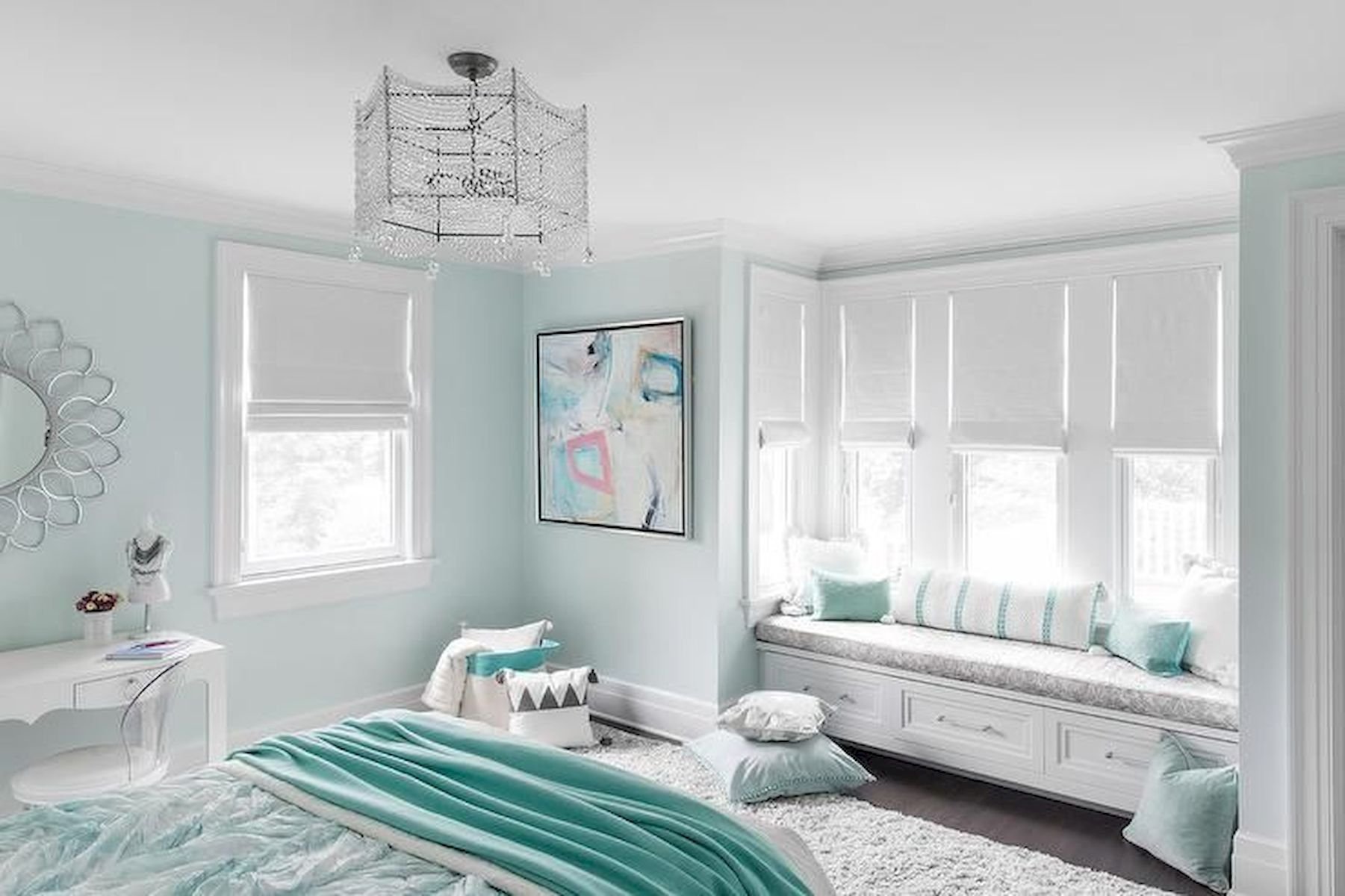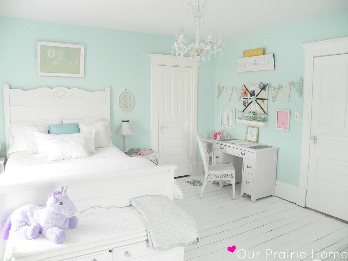 Спальня для девочки в бело бирюзовых тонах