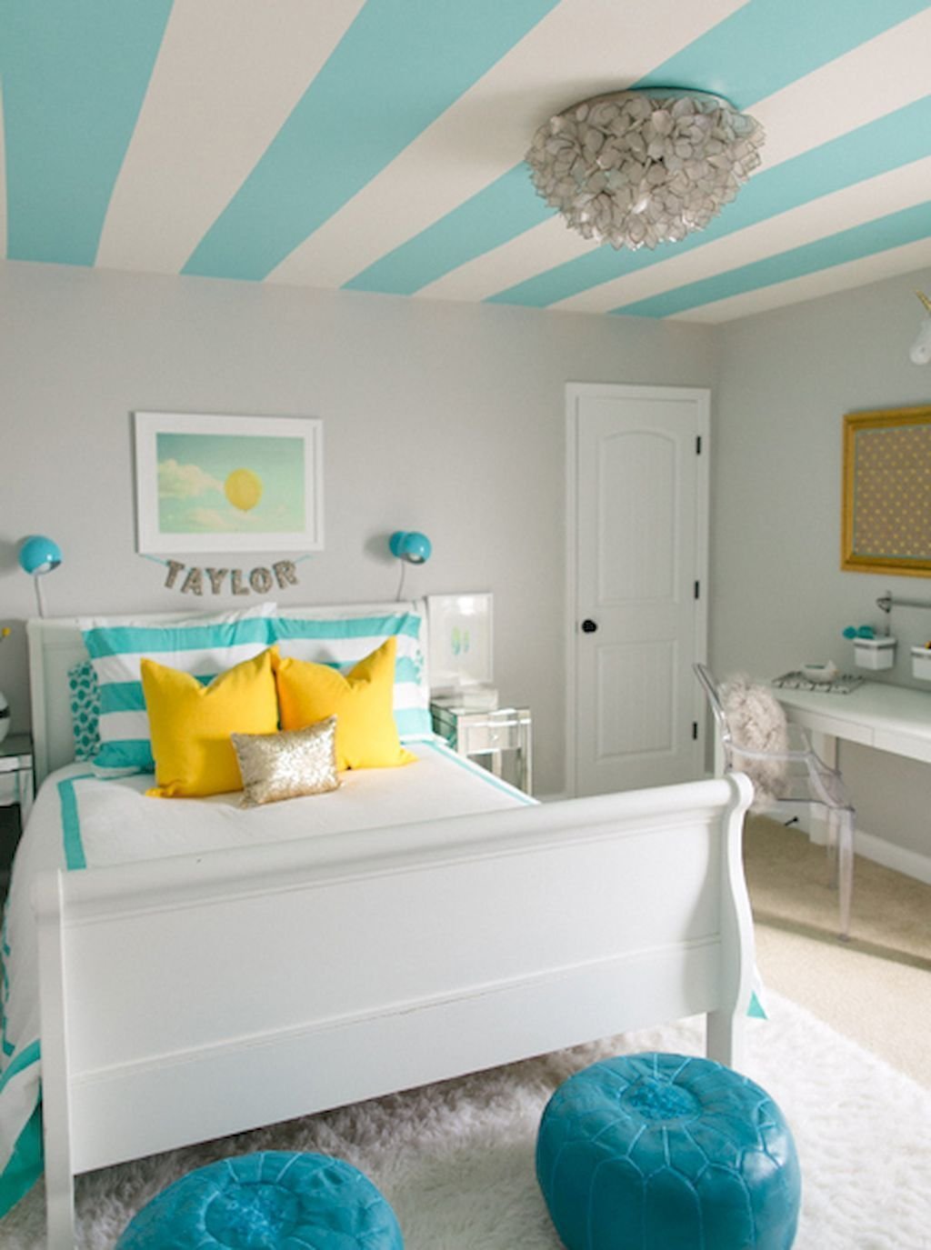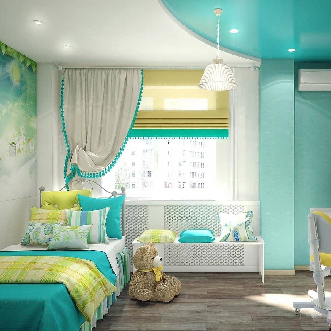 Комната подростка с бирюзовым потолком