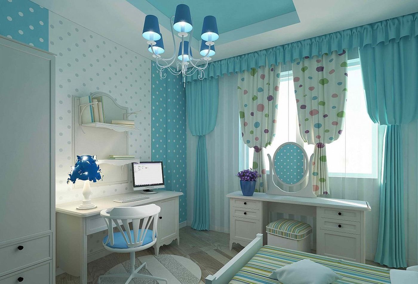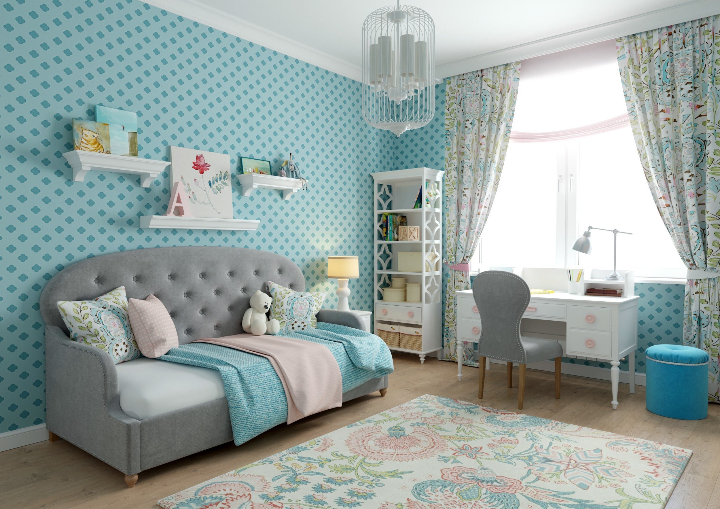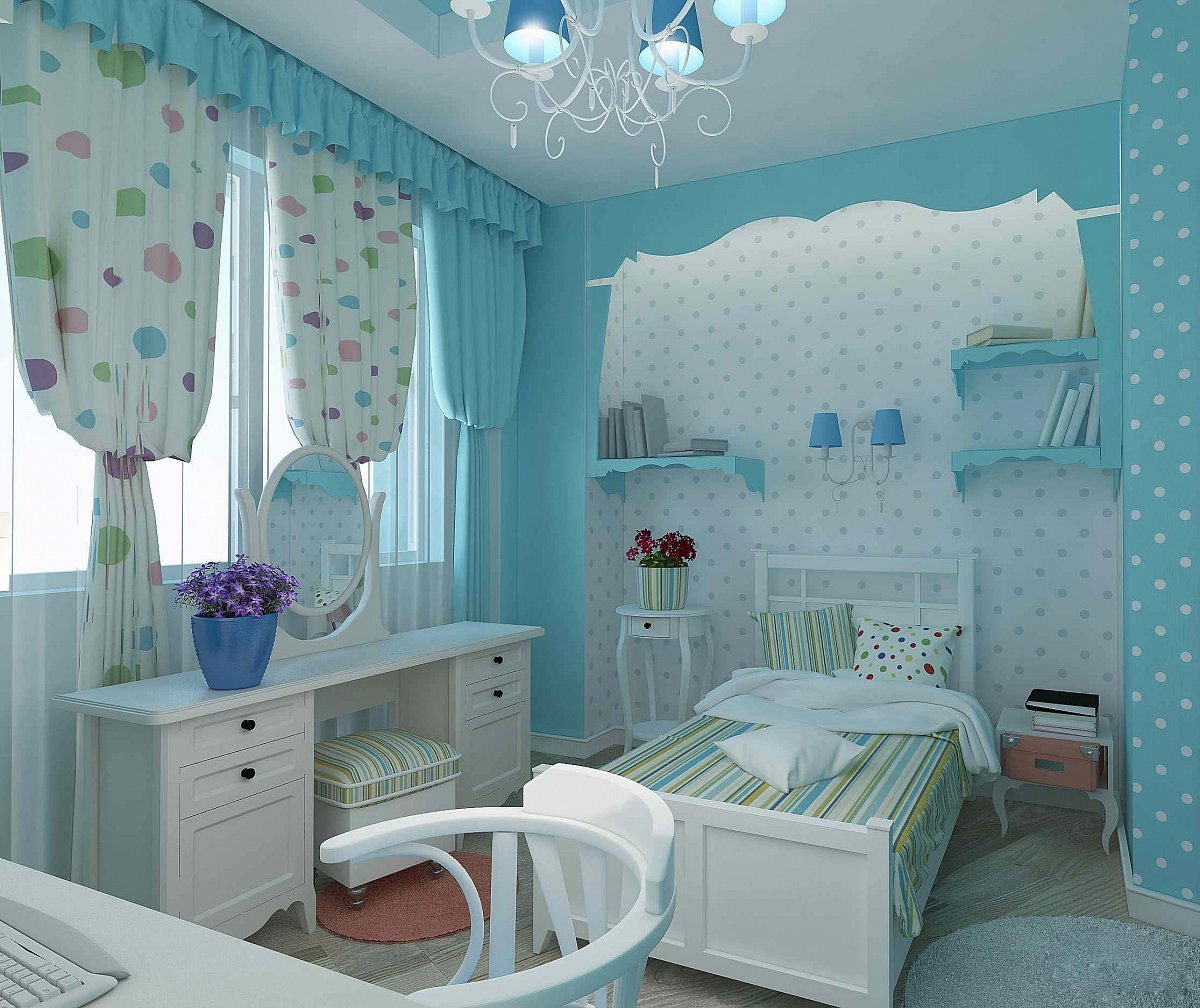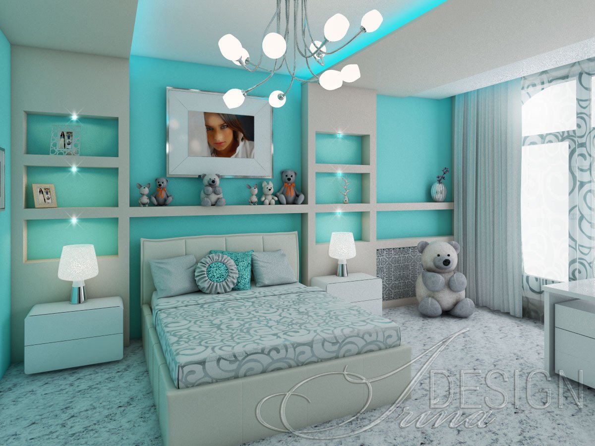 Комната для девочки в бирюзовых тонах