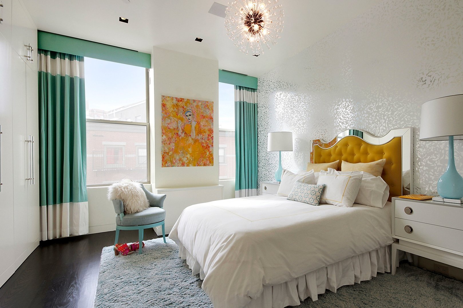 Спальня в бирюзовых тонах