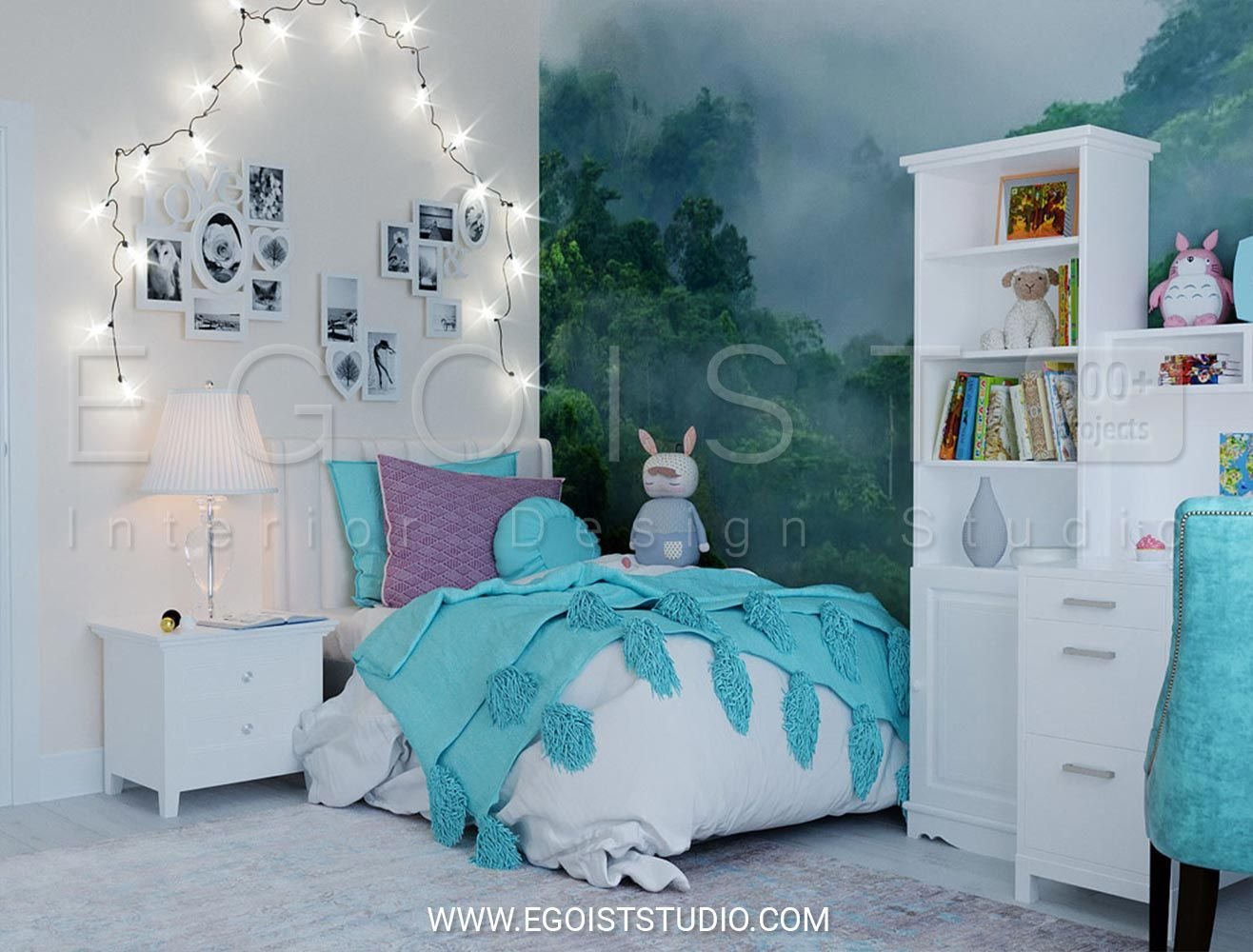 Комната подростка девочки бирюзовые деревья
