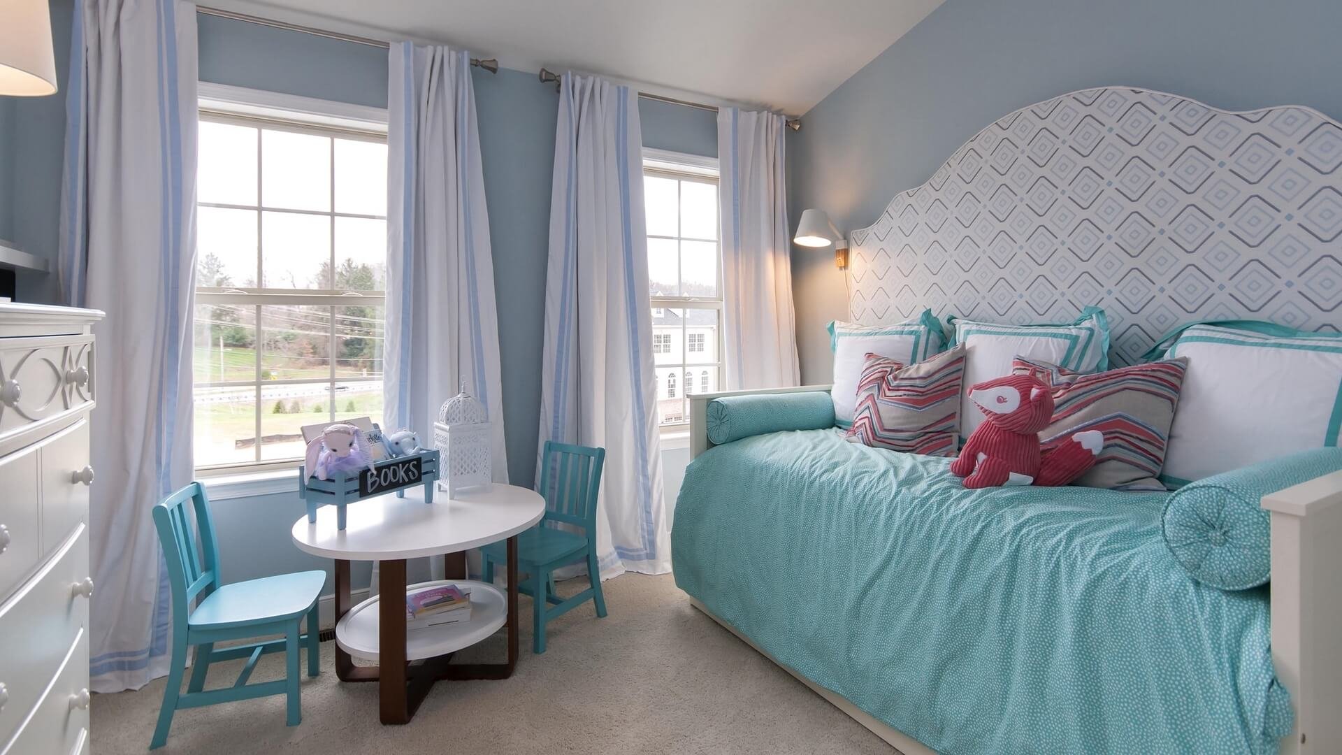 Детская с бирюзовыми шторами