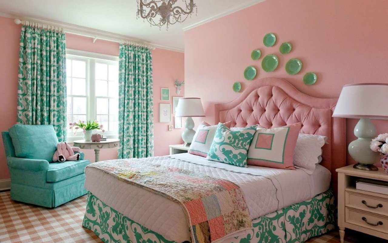Бирюзово розовая комната