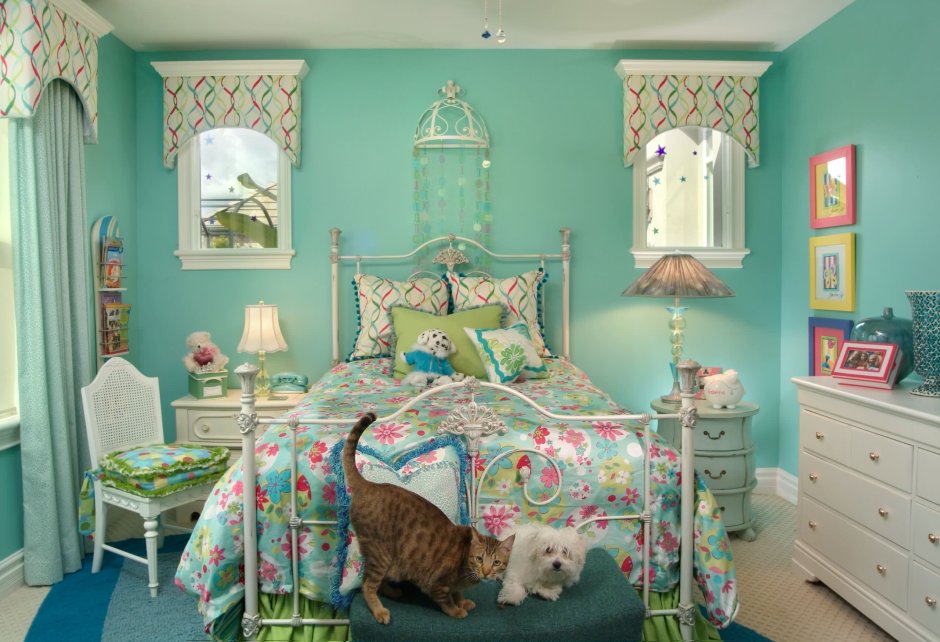 Спальня девочки с бирюзой