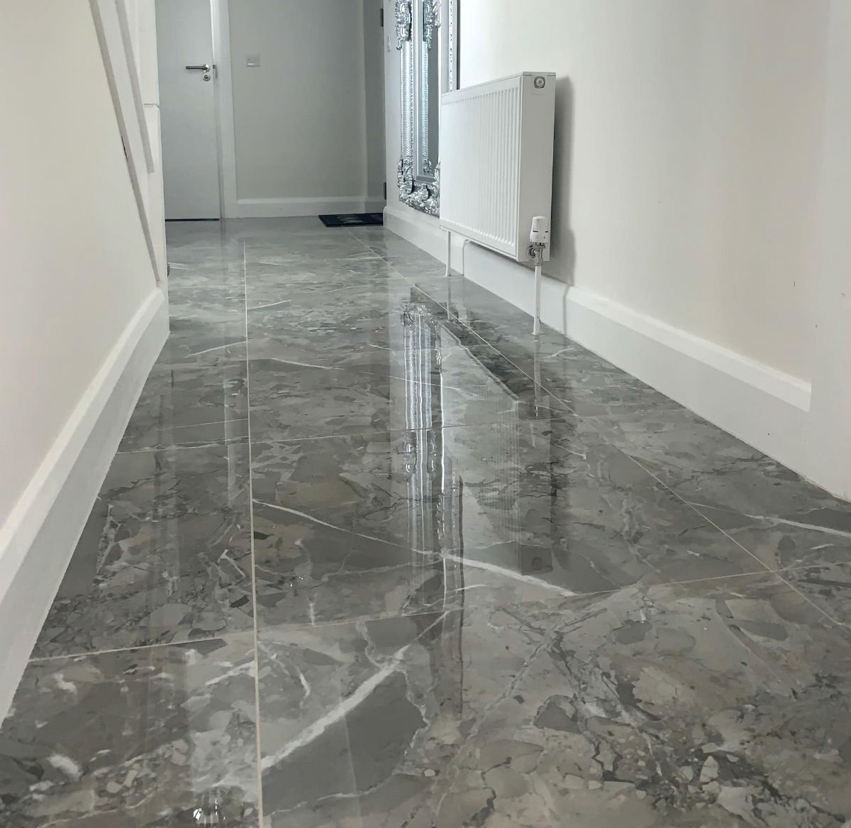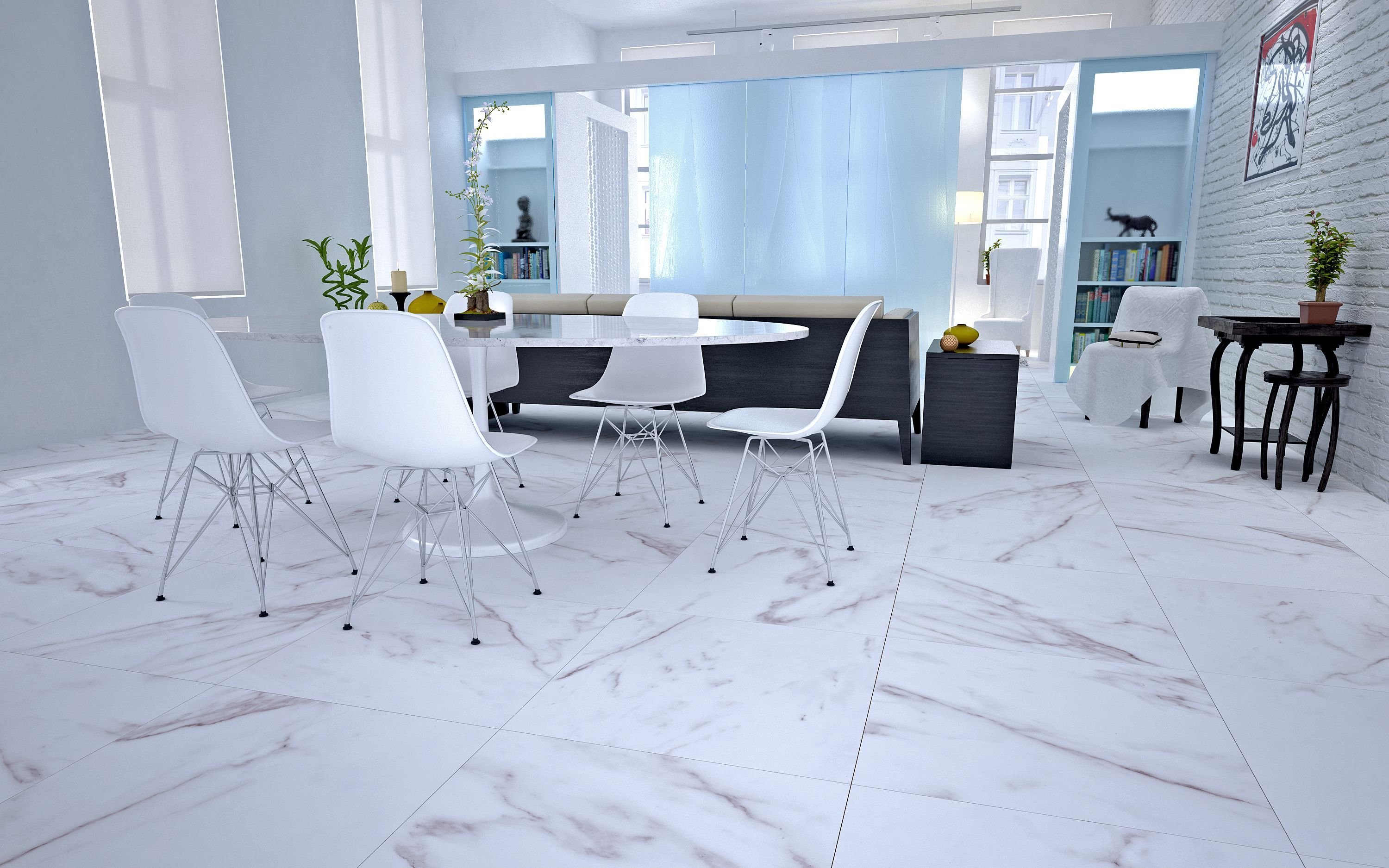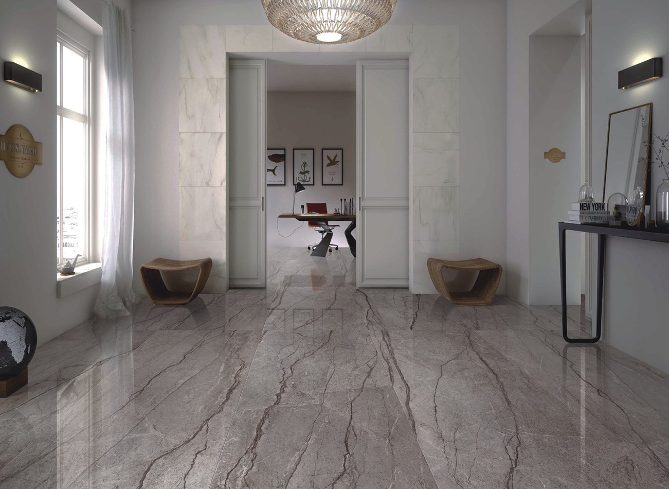 Напольная плитка под мрамор в интерьере