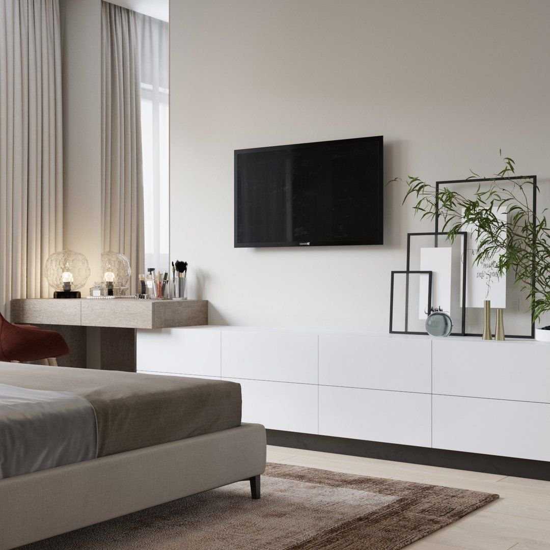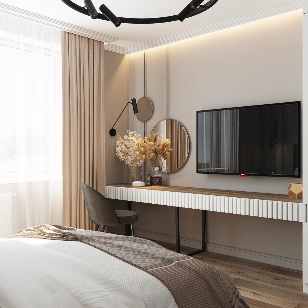 Спальня с телевизором и туалетным столиком