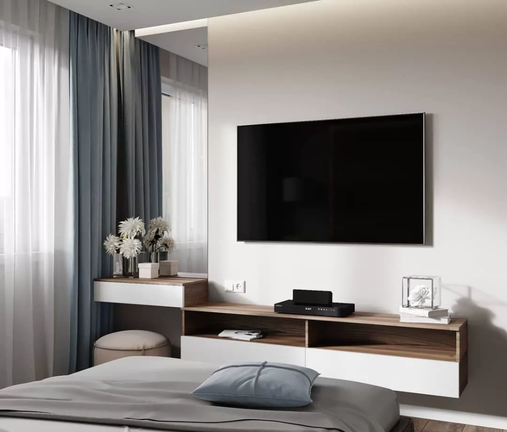 Подвесная тумба под телевизор в спальню