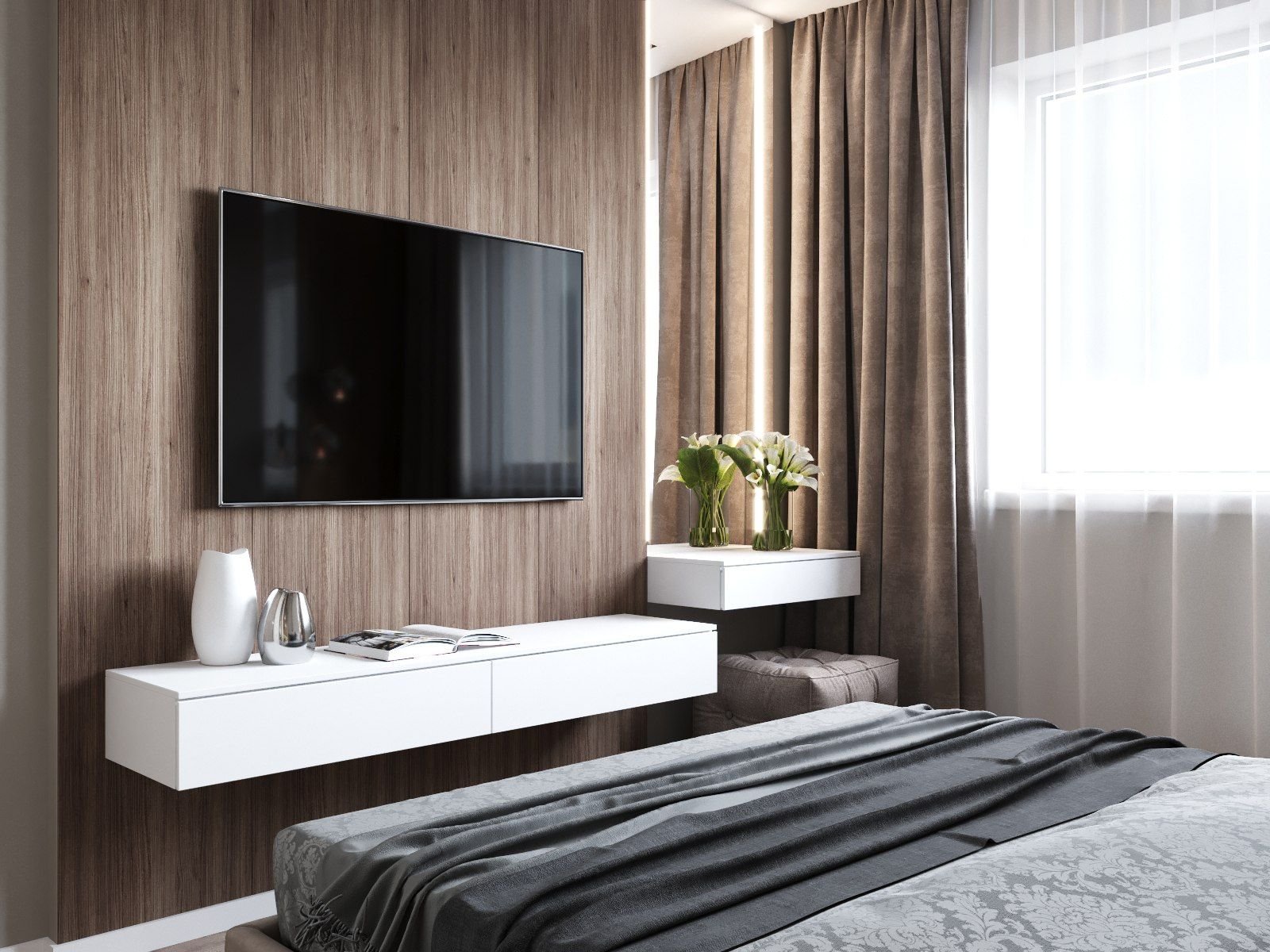 Спальня в современном стиле с телевизором