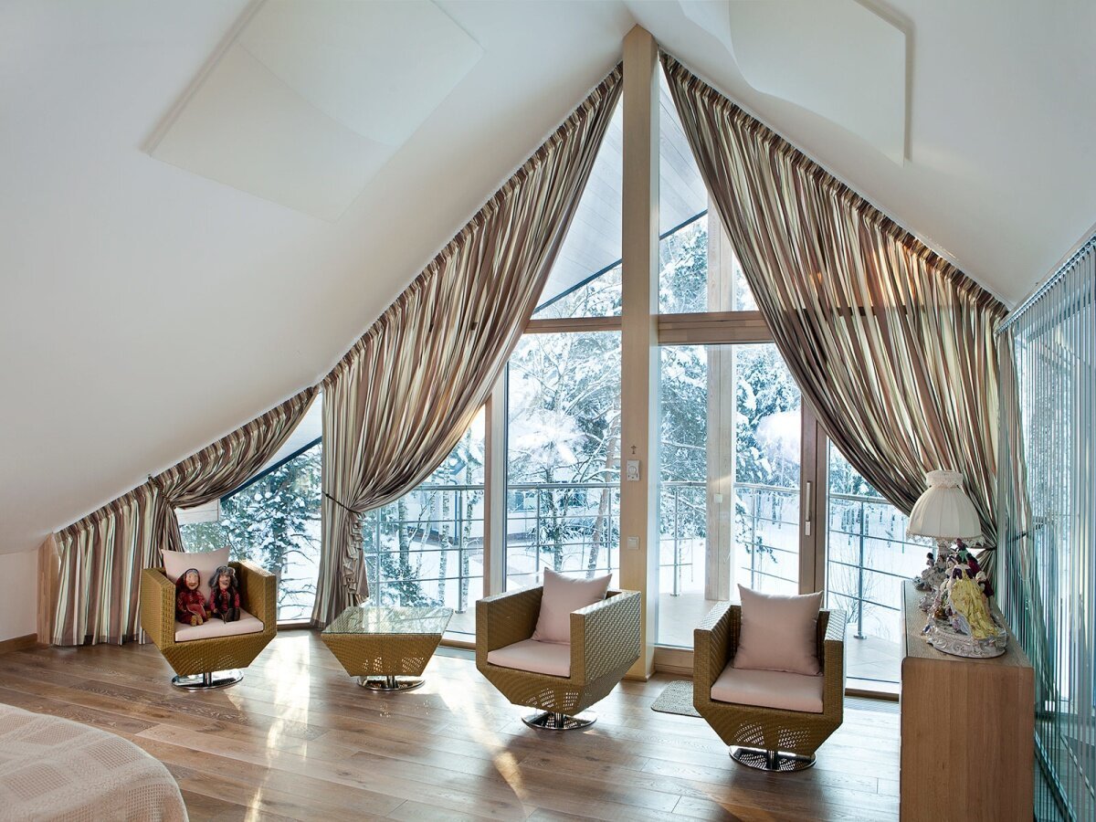 Шторы на мансардных окнах Скандинавский стиль
