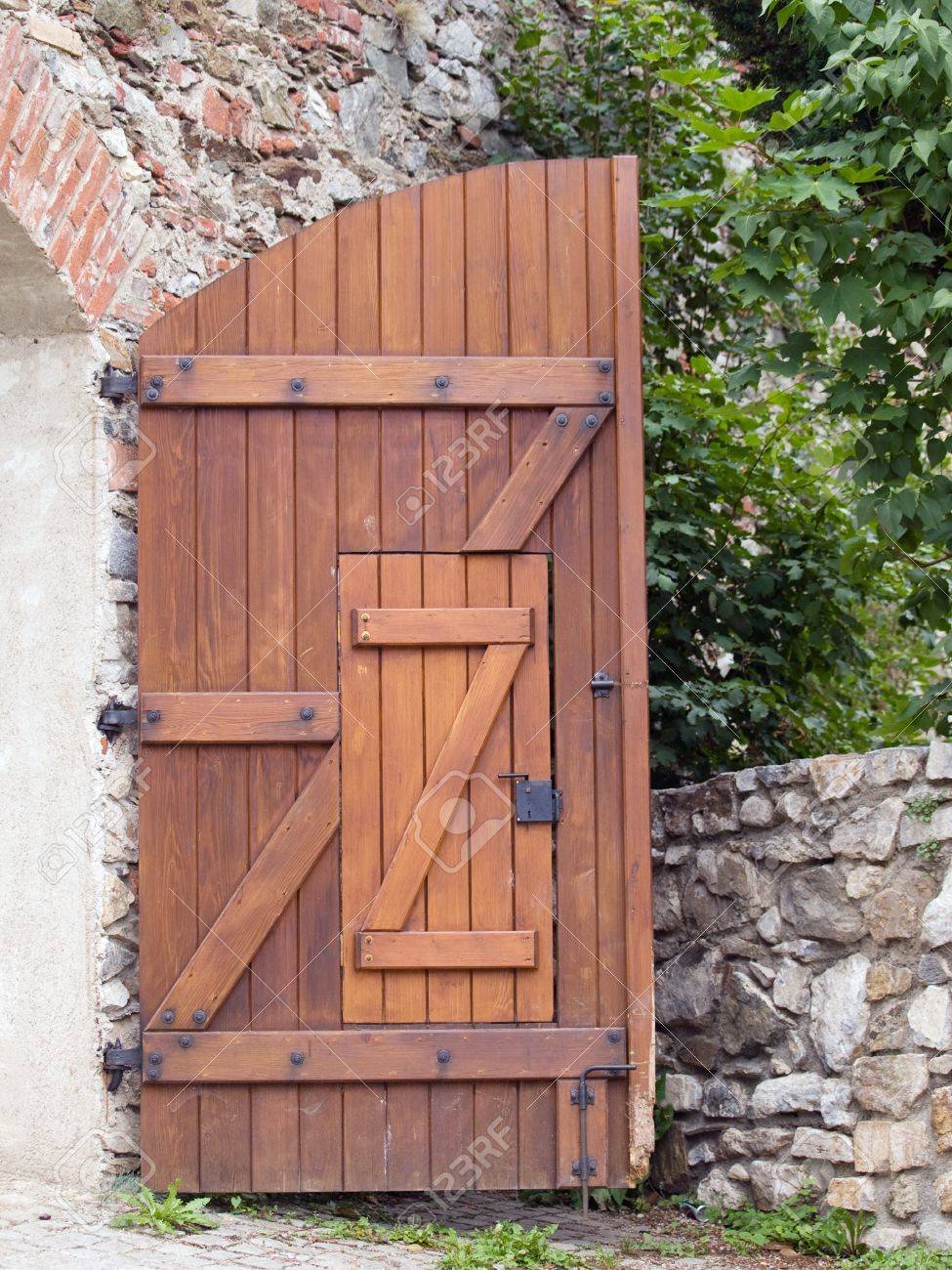 Небольшая дверь из дерева в заборе воротах ограде