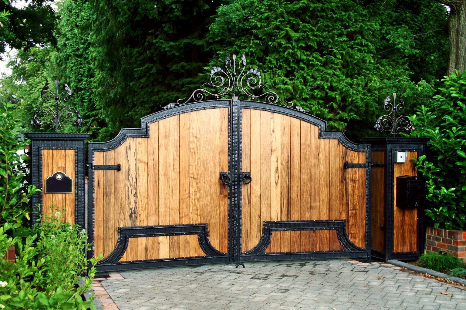Деревянные ворота с ковкой