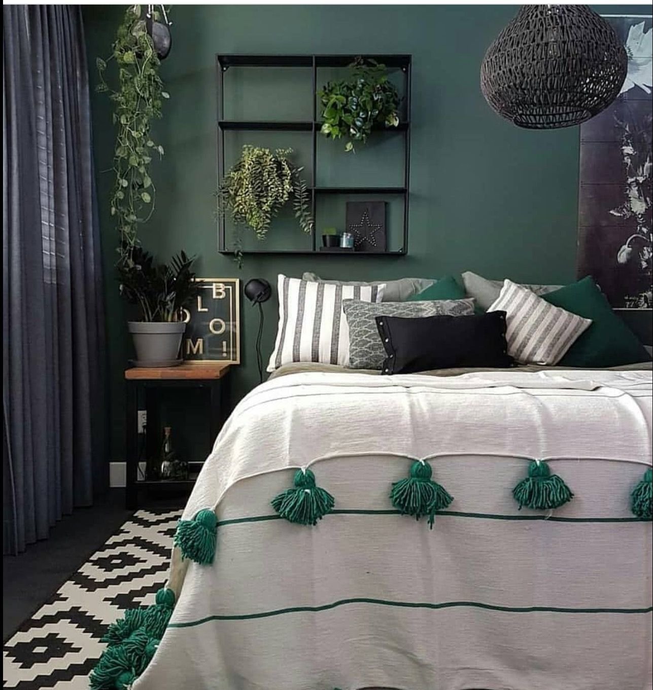 Темно зеленая спальня