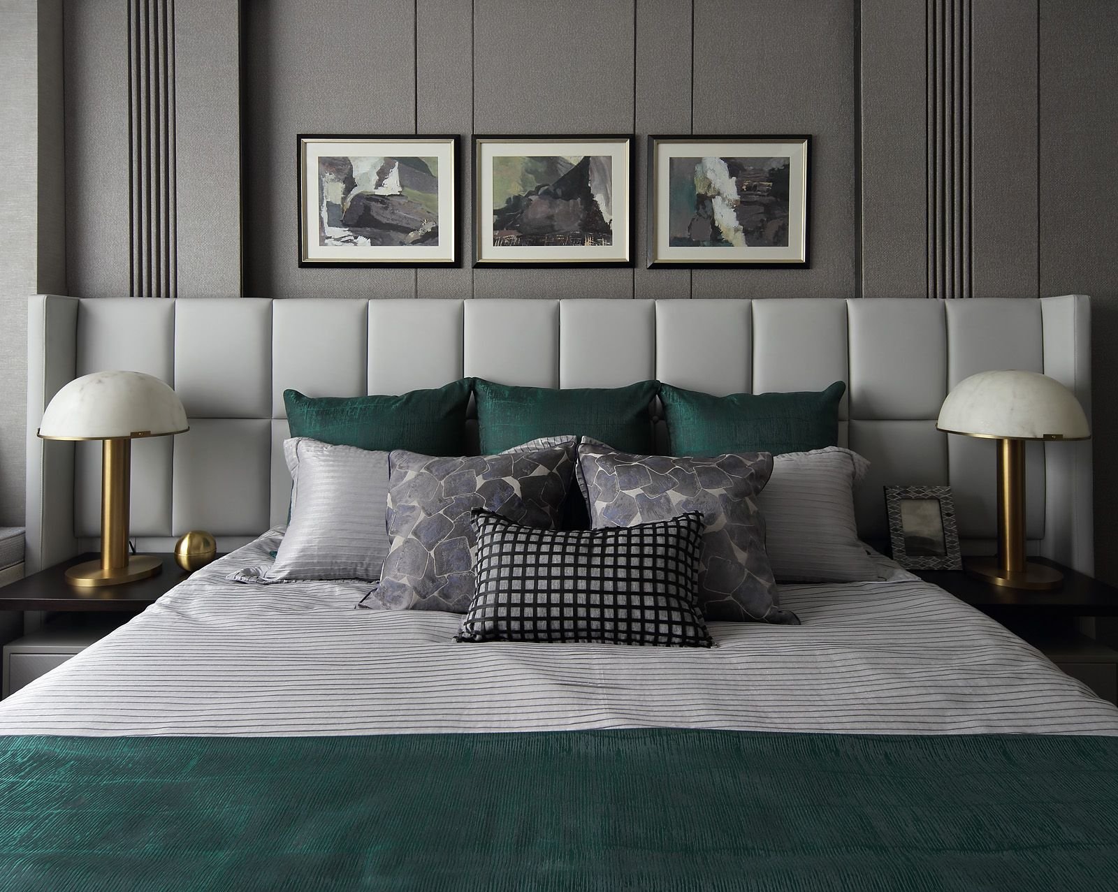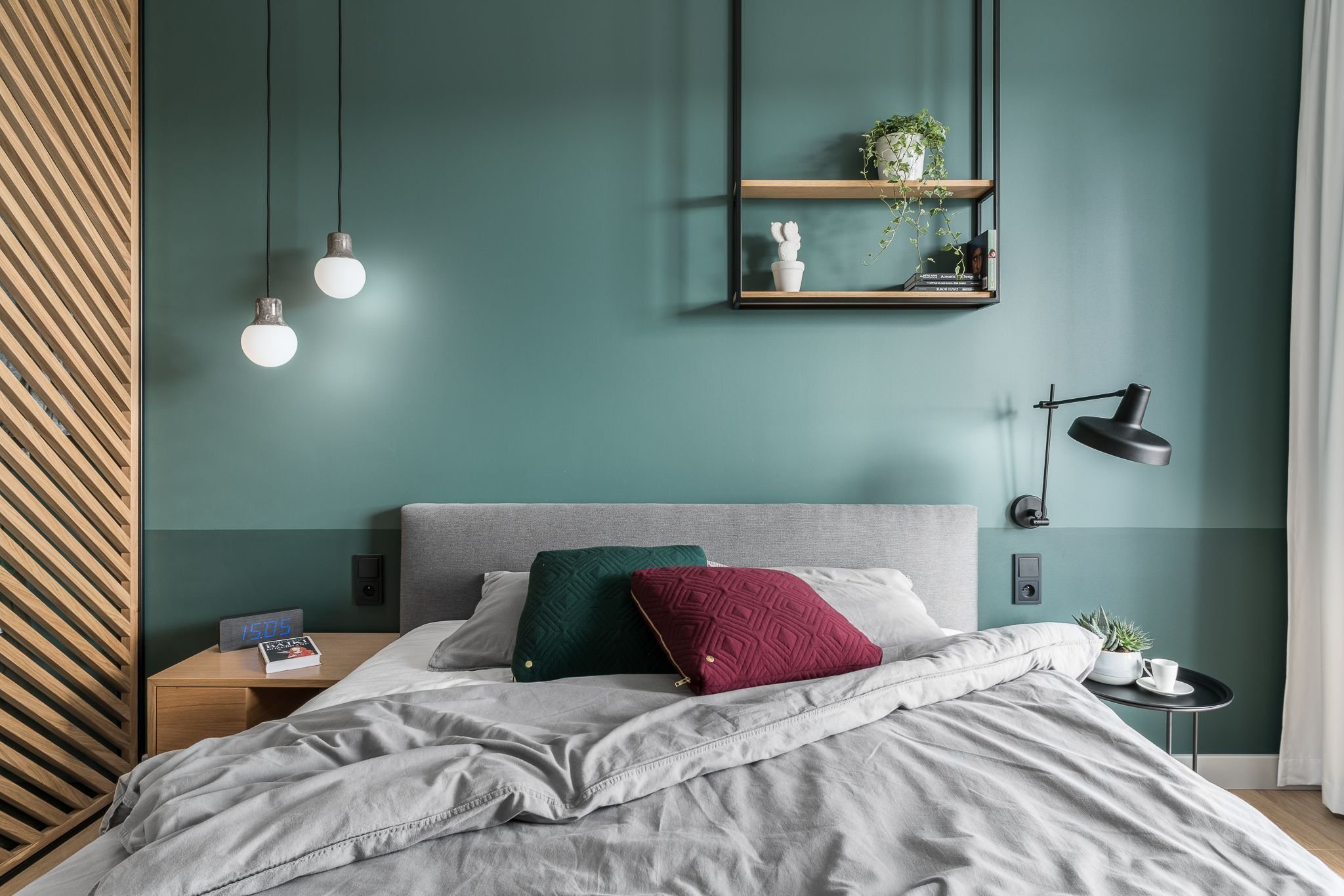 Изумрудно серая спальня