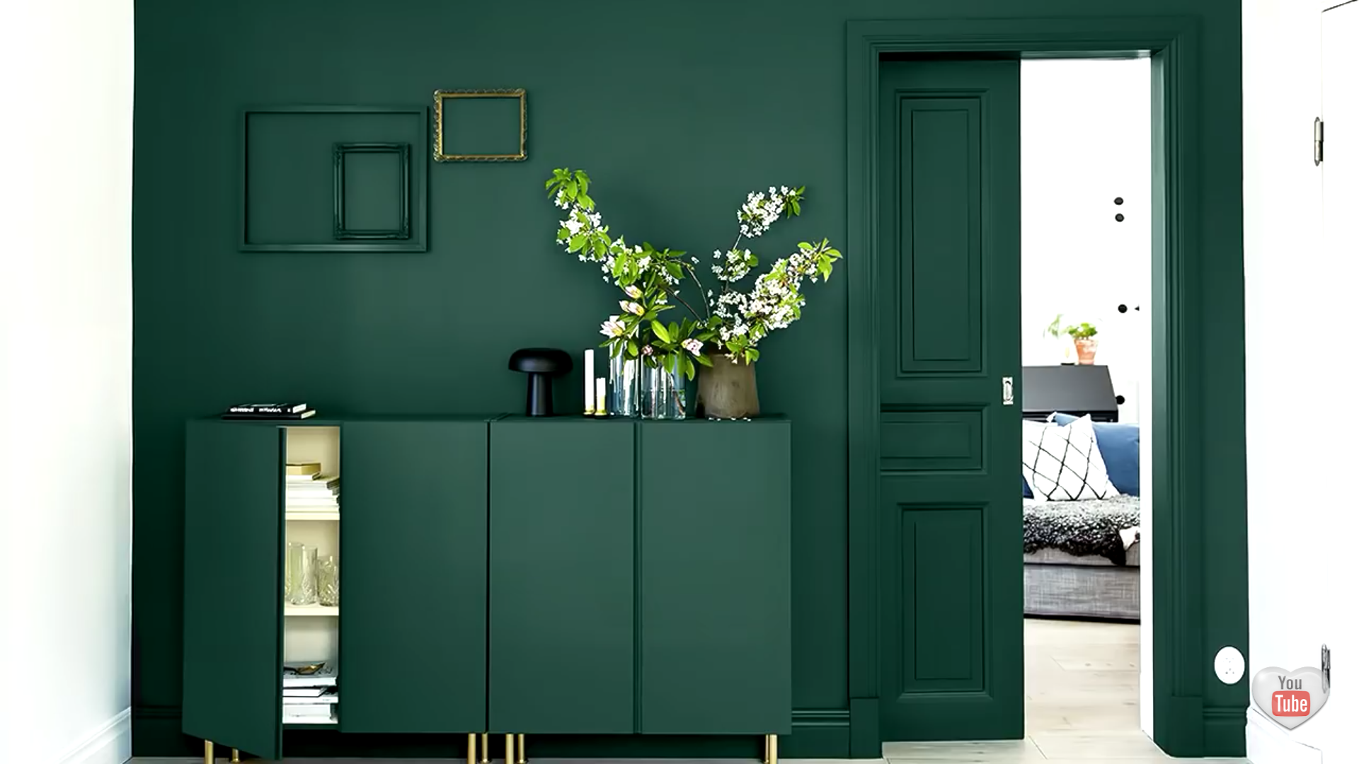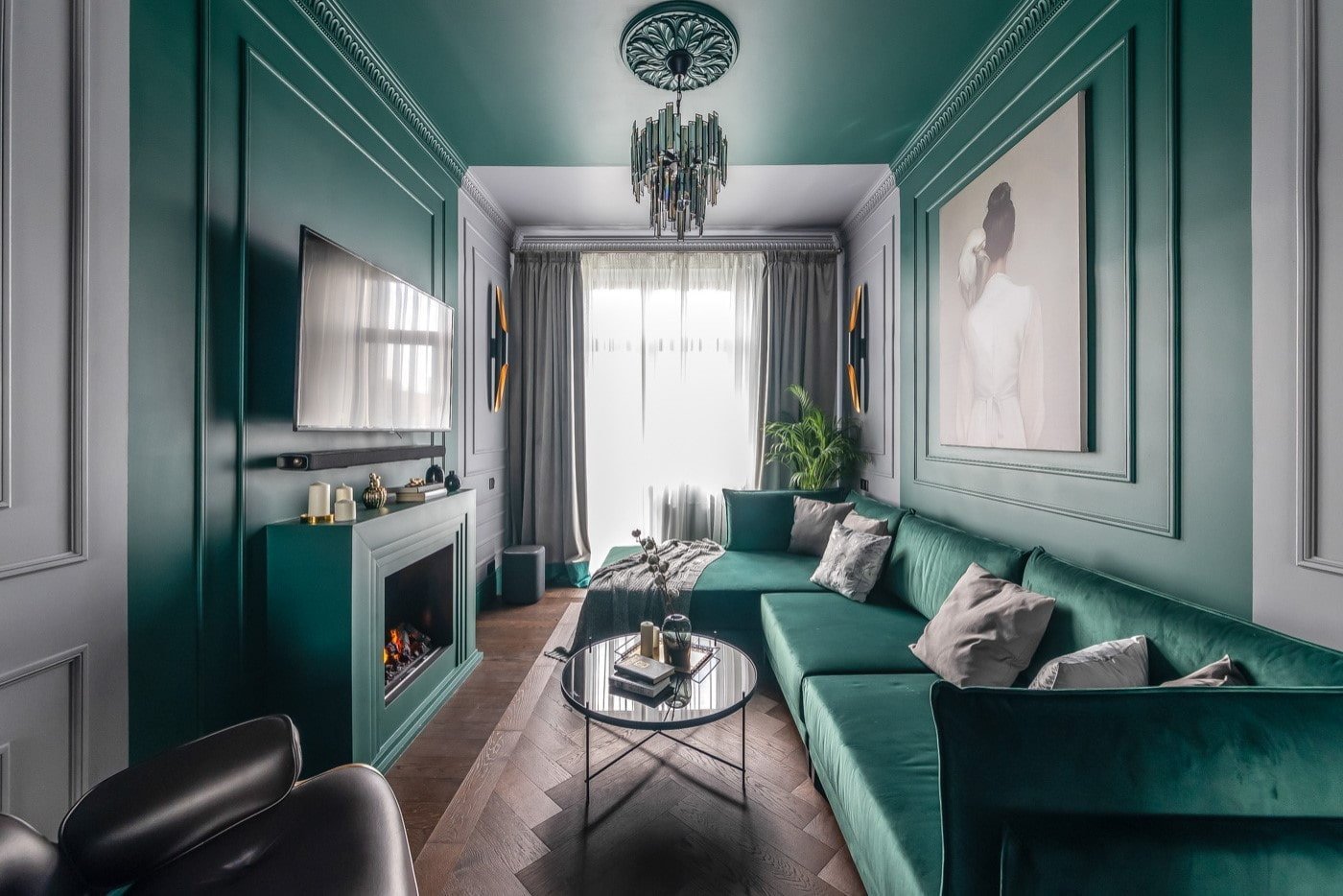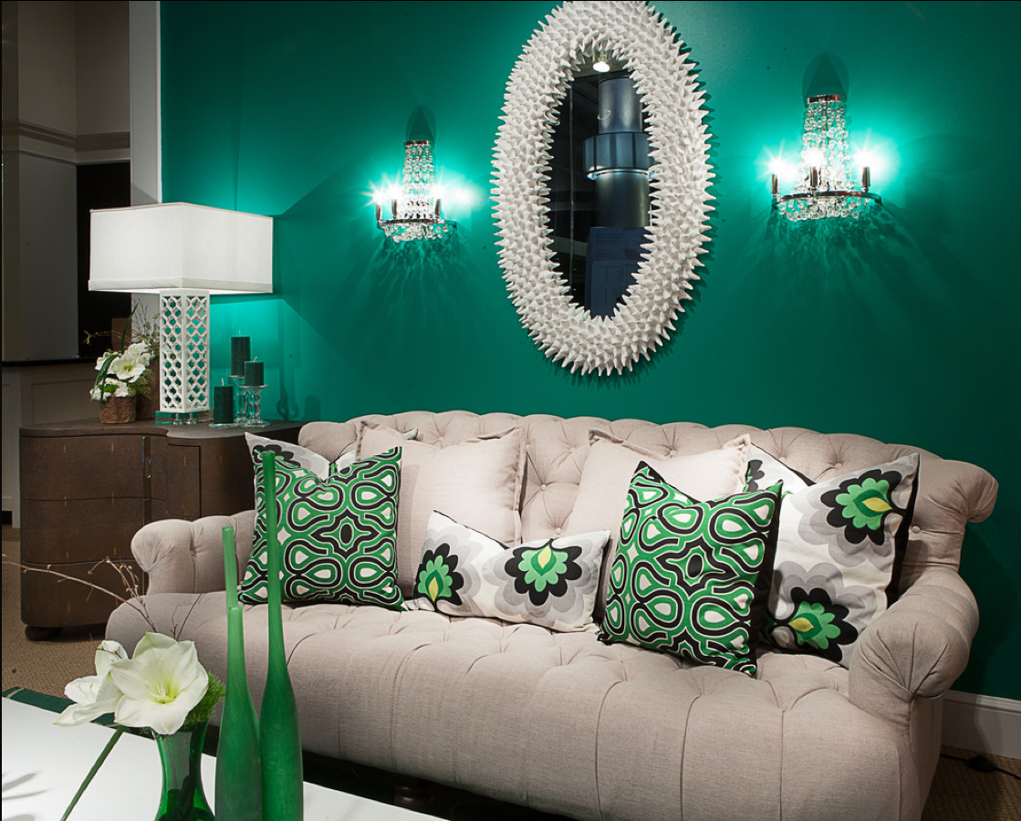 Изумрудный цвет стен в гостиной