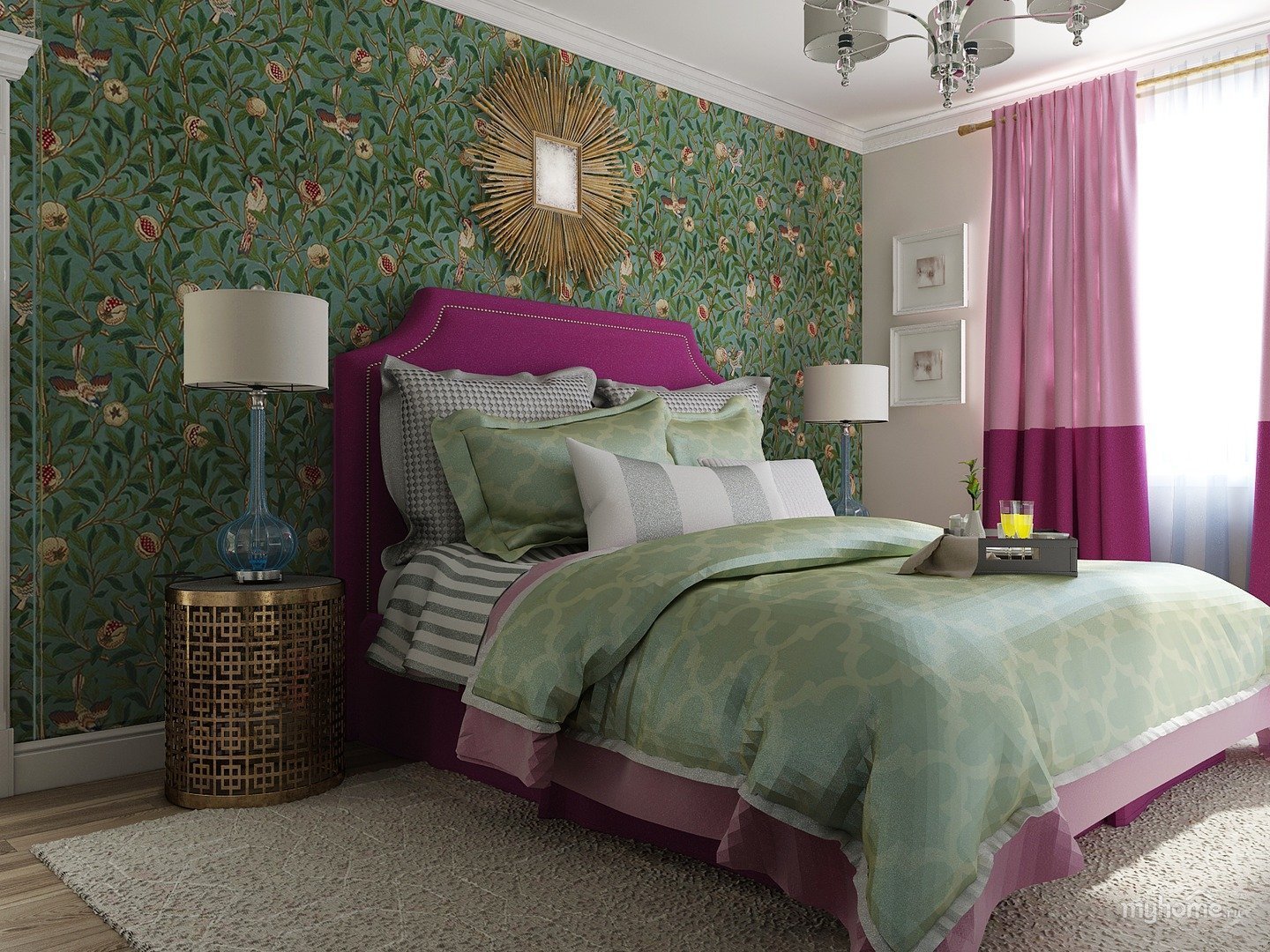 Спальня в зелено розовых тонах