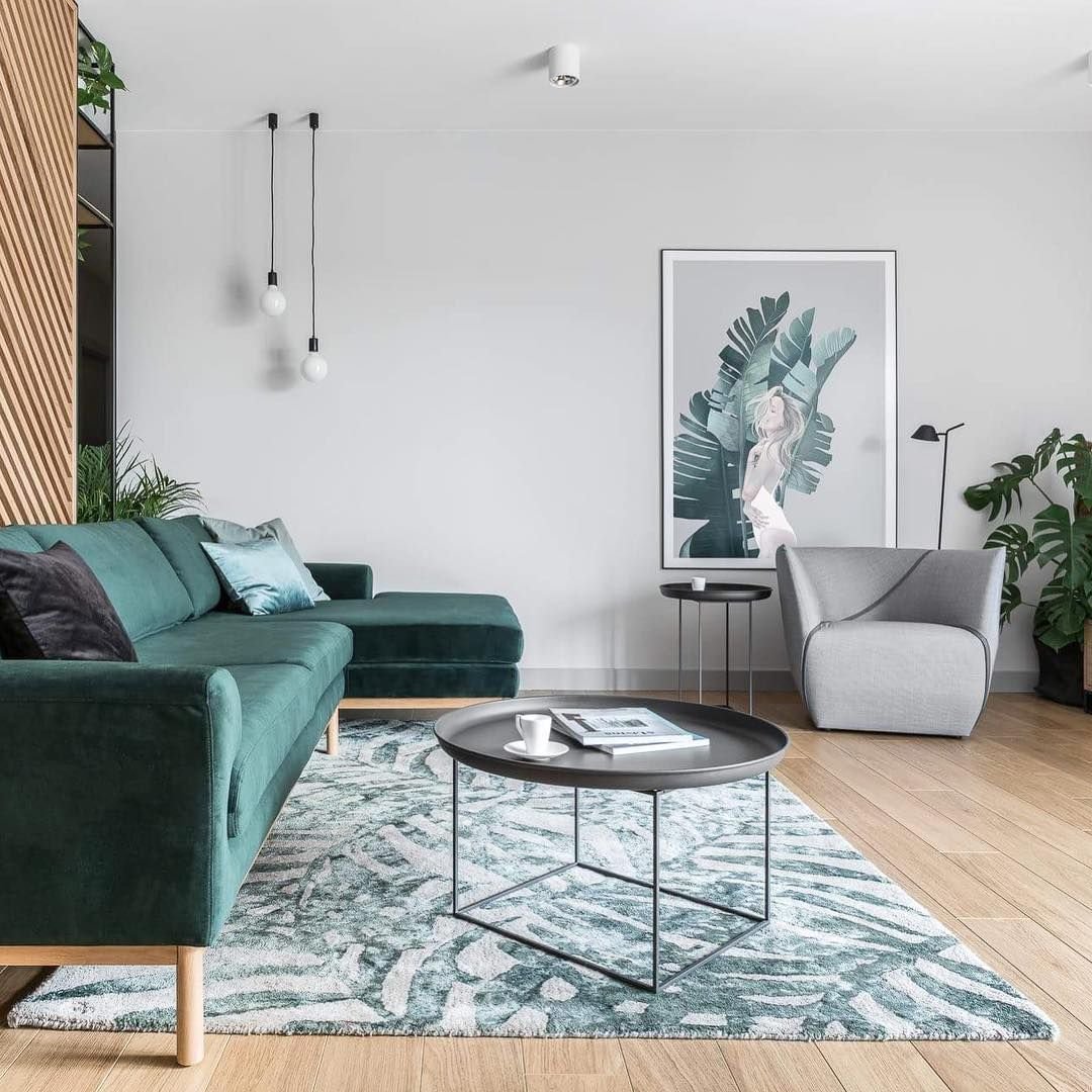 Гостиная в скандинавском стиле изумрудный цвет