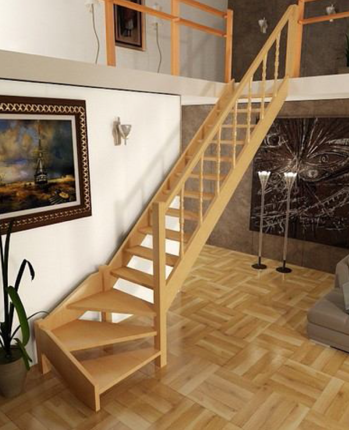 Лестница межэтажная деревянная к-001м/1 правозаходная