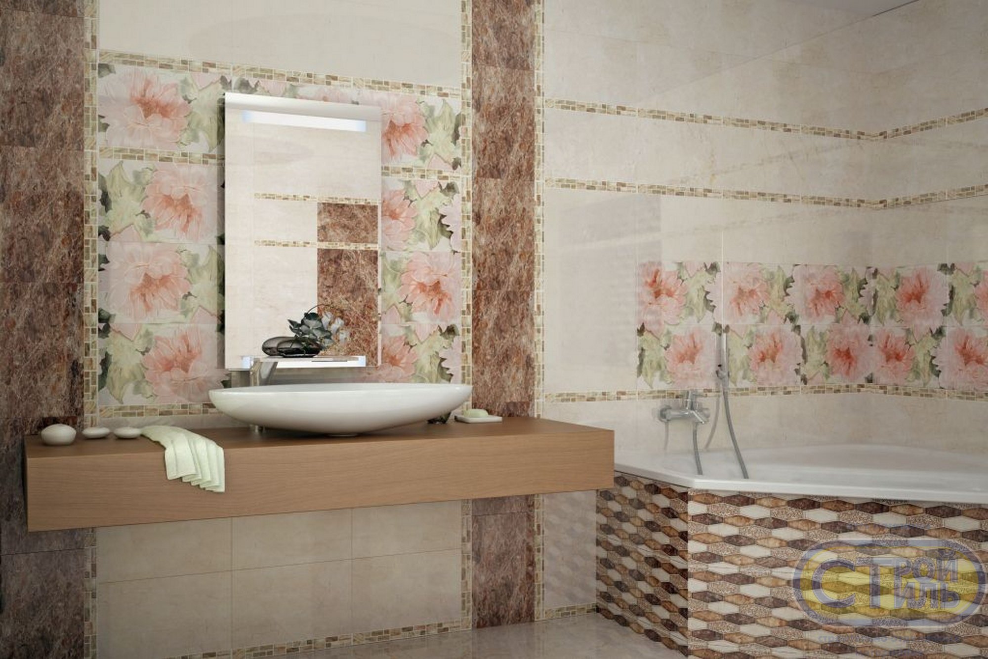 Комментируют Плитка с розами для ванной: