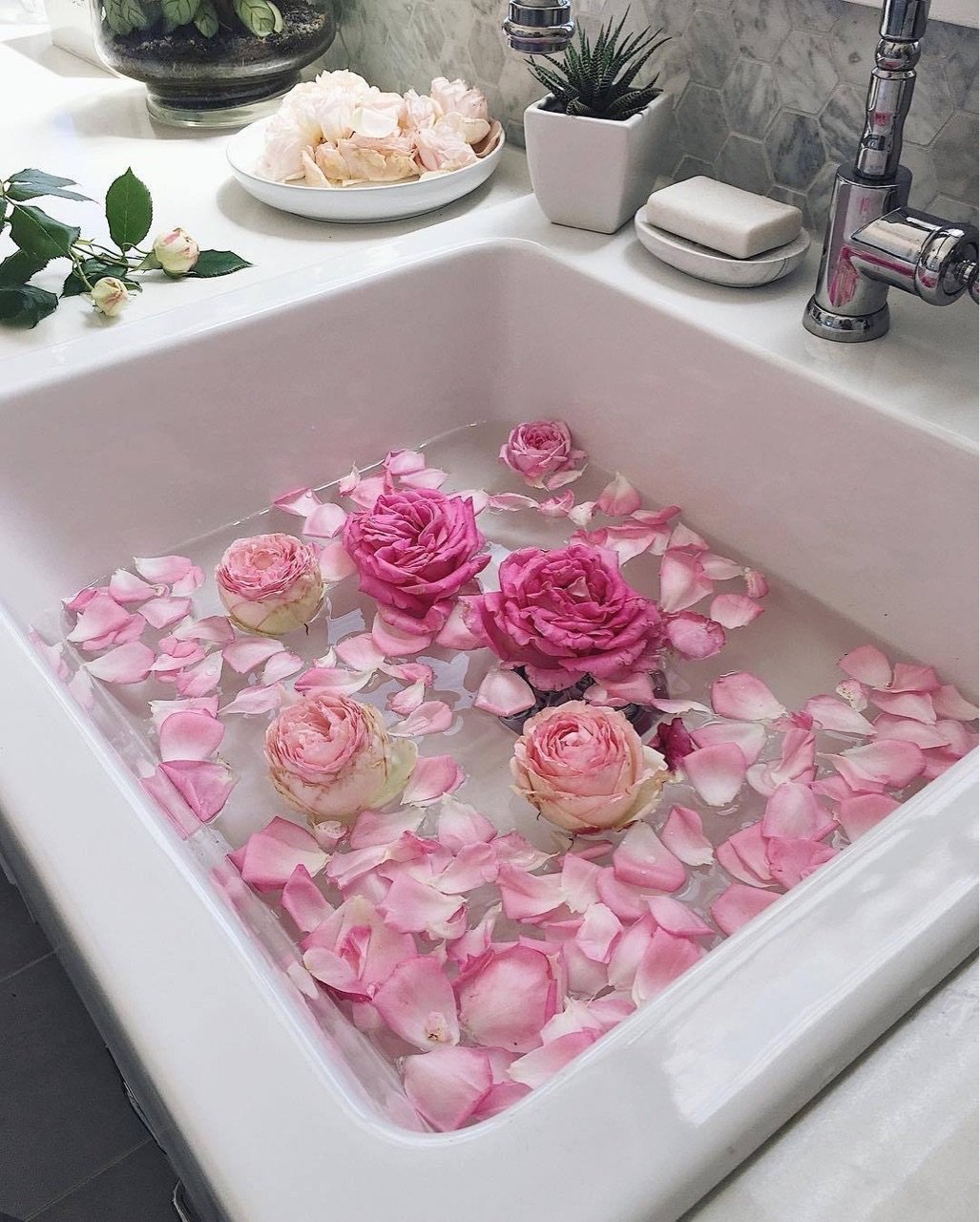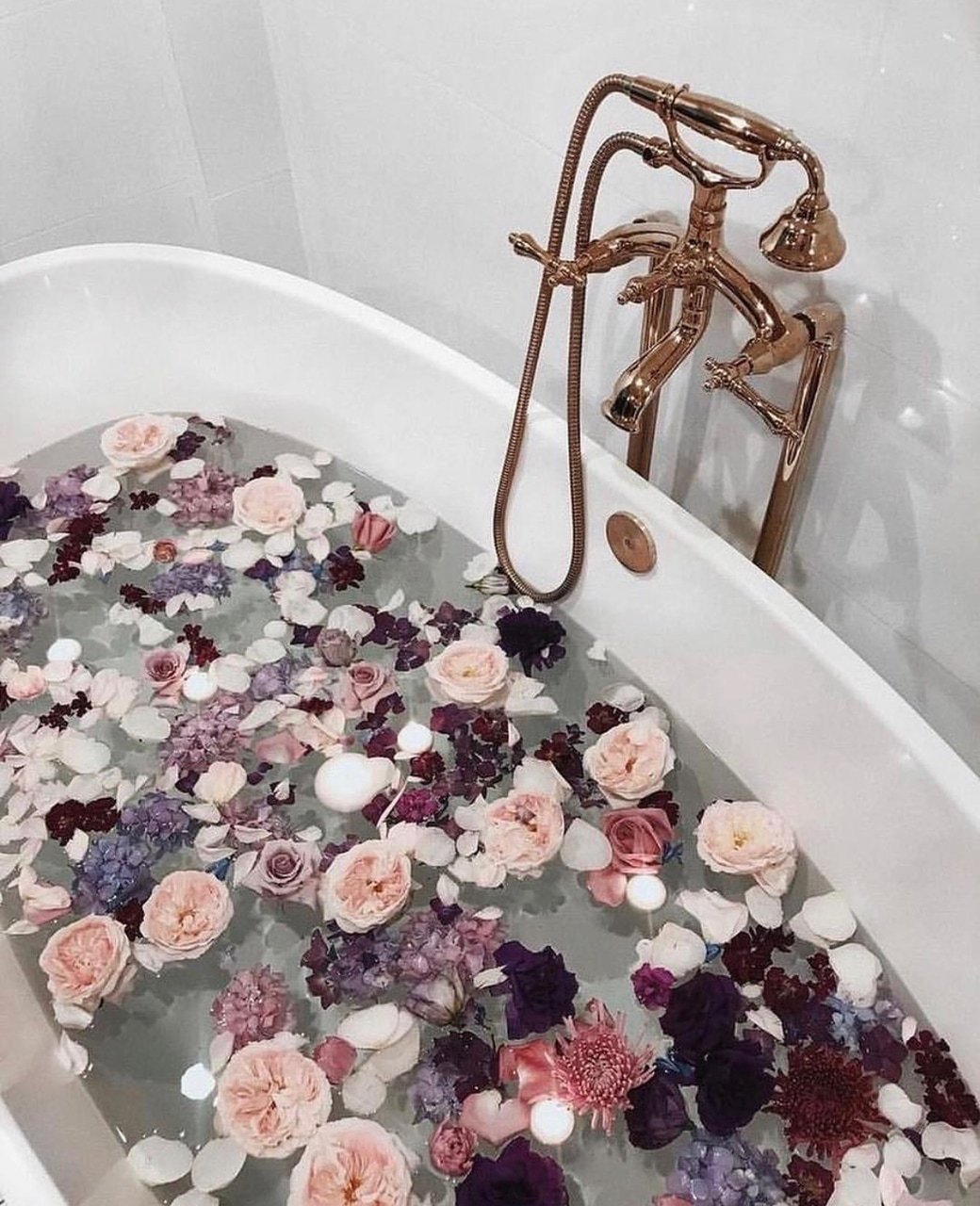 Ванная с лепестками роз